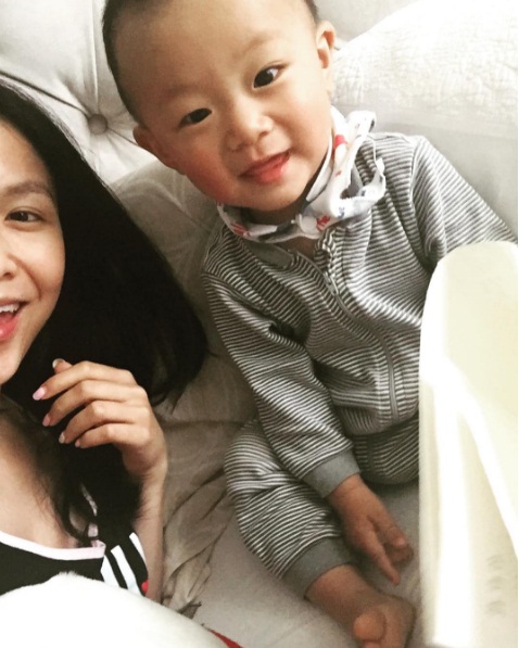 Cậu bé có khuôn mặt bầu bĩnh và làn da trắng sứ giống hệt mẹ.