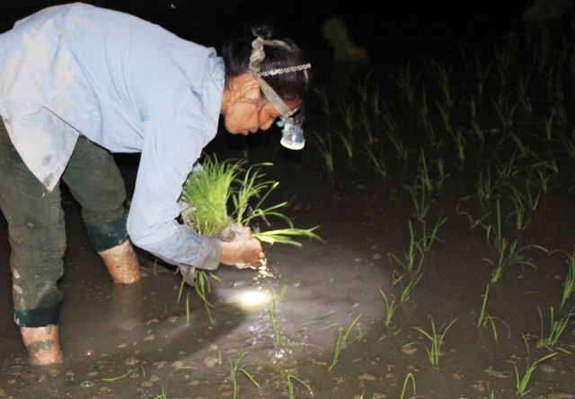 “Sau khi làm đất xong phải tranh thủ cấy ngay nếu không sẽ bị khô nước không làm được. Vì vậy, mấy ngày hôm nay, tôi phải tranh thủ ra đồng vào buổi tối. Thường sau khi ăn cơm xong, chúng tôi ra đồng cấy đến khoảng nửa đêm là về nhà nghỉ ngơi một chút, sau đó khoảng 2h sáng lại tiếp tục ra đồng cấy đến khi mặt trời lên thì về”, bà Lê Thị Vân chia sẻ trên báo Dân Trí.