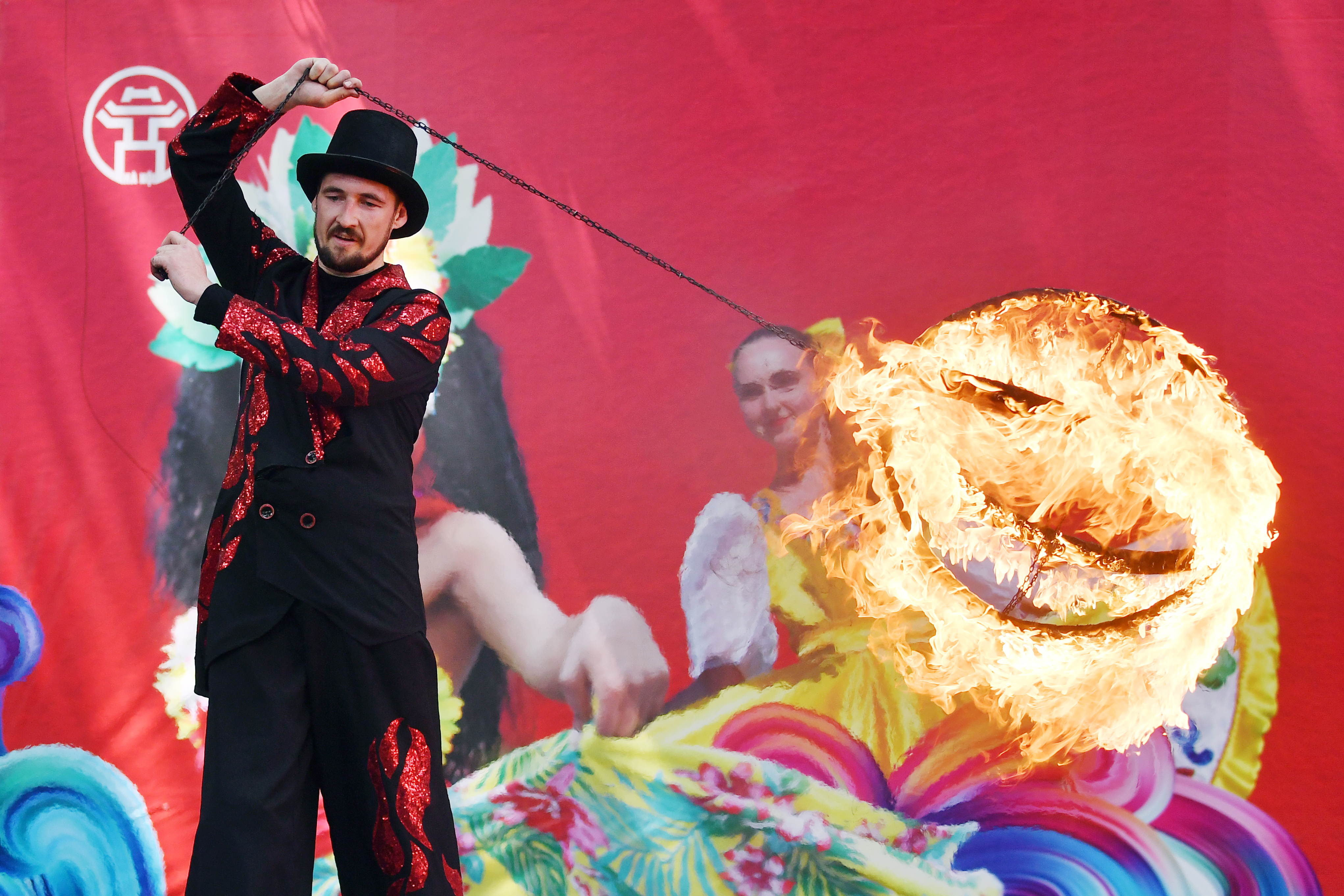 Một nghệ sỹ với màn trình diễn múa lửa sôi động