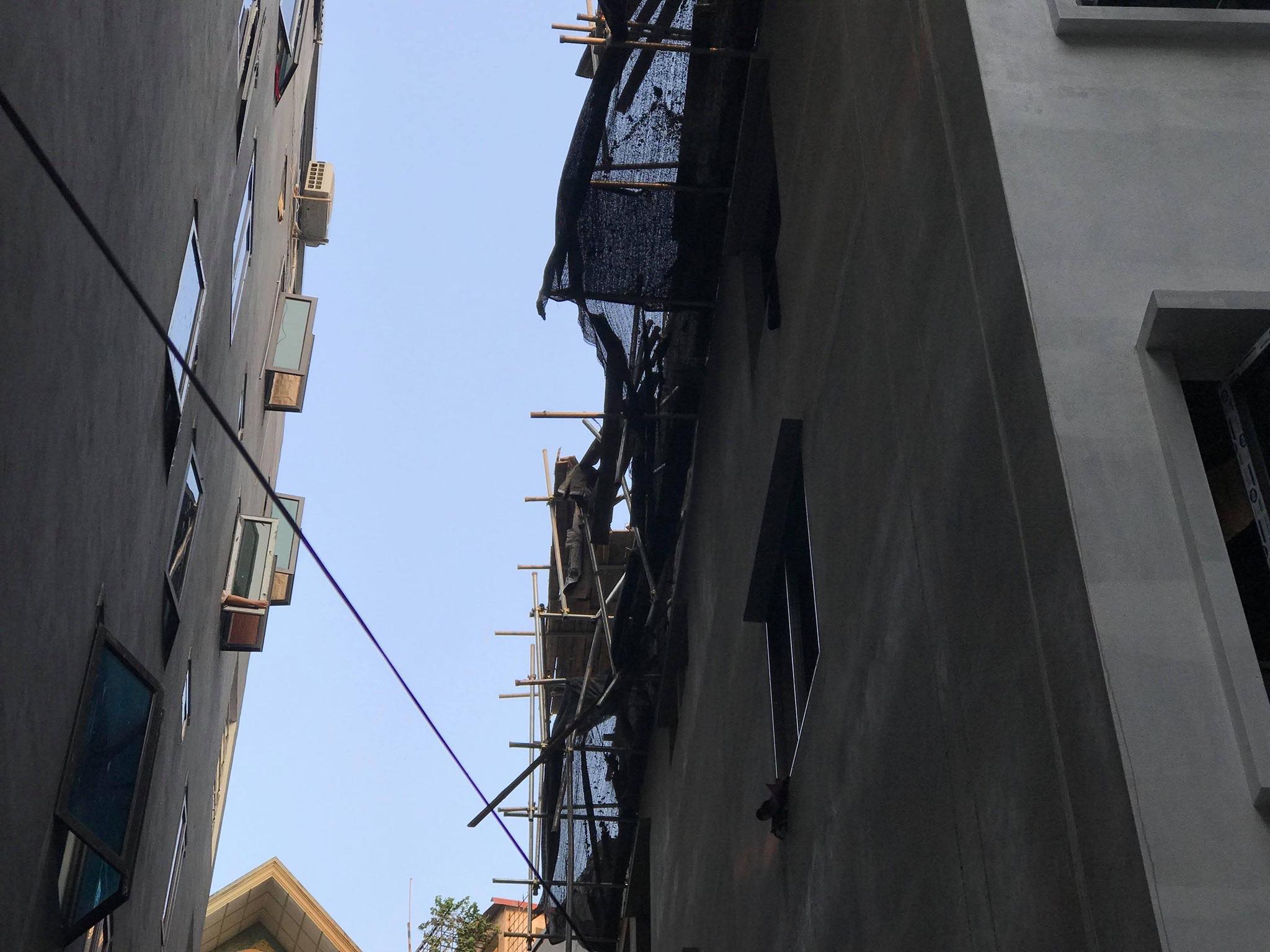 Giàn giáo tầng 5 tòa nhà đang được xây dựng trên đường Dương Quảng Hàm (Hà Nội).