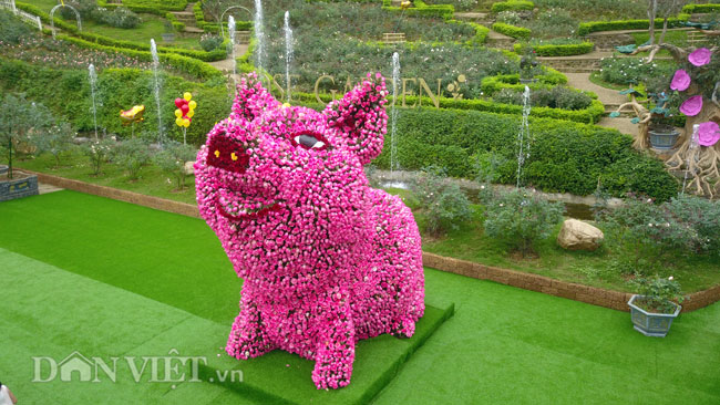 Hoa hồng được lấy từ chính trong khu vườn hồng của khu du lịch. 3 màu chủ đạo của chú lợn gồm màu hồng, hồng phớt và hồng đỏ.