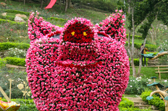 Chú lợn được kết từ hơn 1 vạn bông hồng tươi.