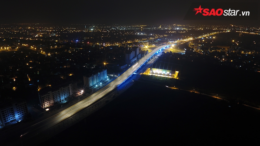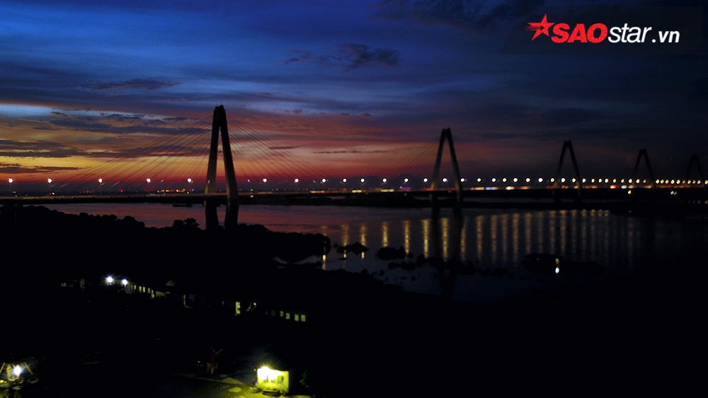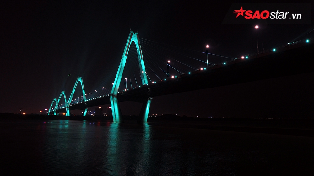 Cây cầu Nhật Tân lung linh ánh sáng khi về đêm.