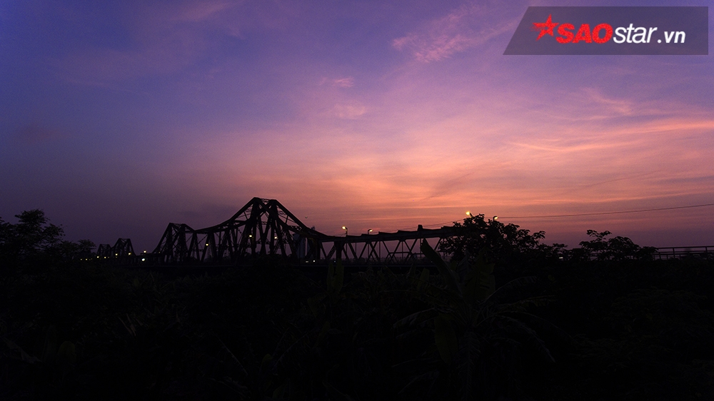 Cây cầu Long Biên - chứng nhân lịch sử nhìn ngược sáng trong ánh chiều tà.