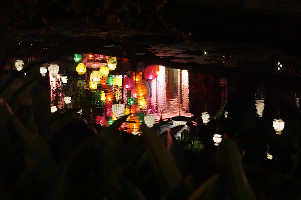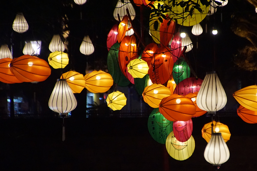 Những chiếc đèn lồng rực rõ sắc màu được treo khắp nơi.