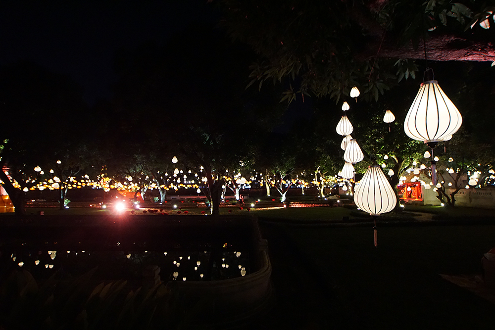 Những chiếc đèn lồng phần lớn được treo trên cây. Khi kết hợp với hệ thống chiếu sáng bằng các loại đèn màu lại trở nên lung linh hơn. Không gian ở đây khá thoáng đãng, rất thích hợp nếu bạn muốn đi tản bộ hoặc check-in những bức ảnh “sống ảo” trên MXH.