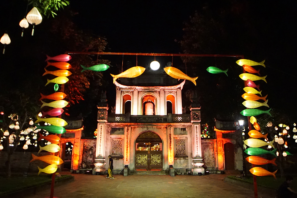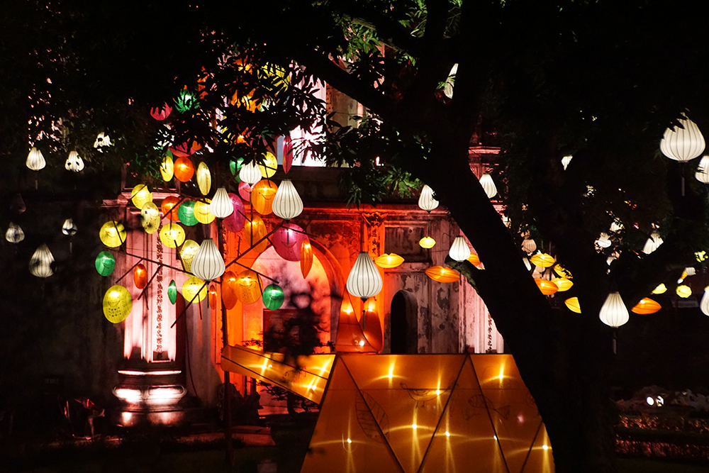 Điểm hấp dẫn nhất của Văn miếu Quốc Tử Giám những ngày này là hệ thống decor khác lạ. Hàng nghìn chiếc đèn lồng được treo rải rác khắp nơi trong khuôn viên rộng lớn, cổ kính. Ban đêm, những chiếc đèn lồng này sáng rực, lung linh đủ sắc màu. Cảnh tượng đó làm nhiều người nhớ đến phố đèn lồng đỏ Hội An. Văn miếu những ngày giáp Trung thu, đẹp như một Hội An thu nhỏ.