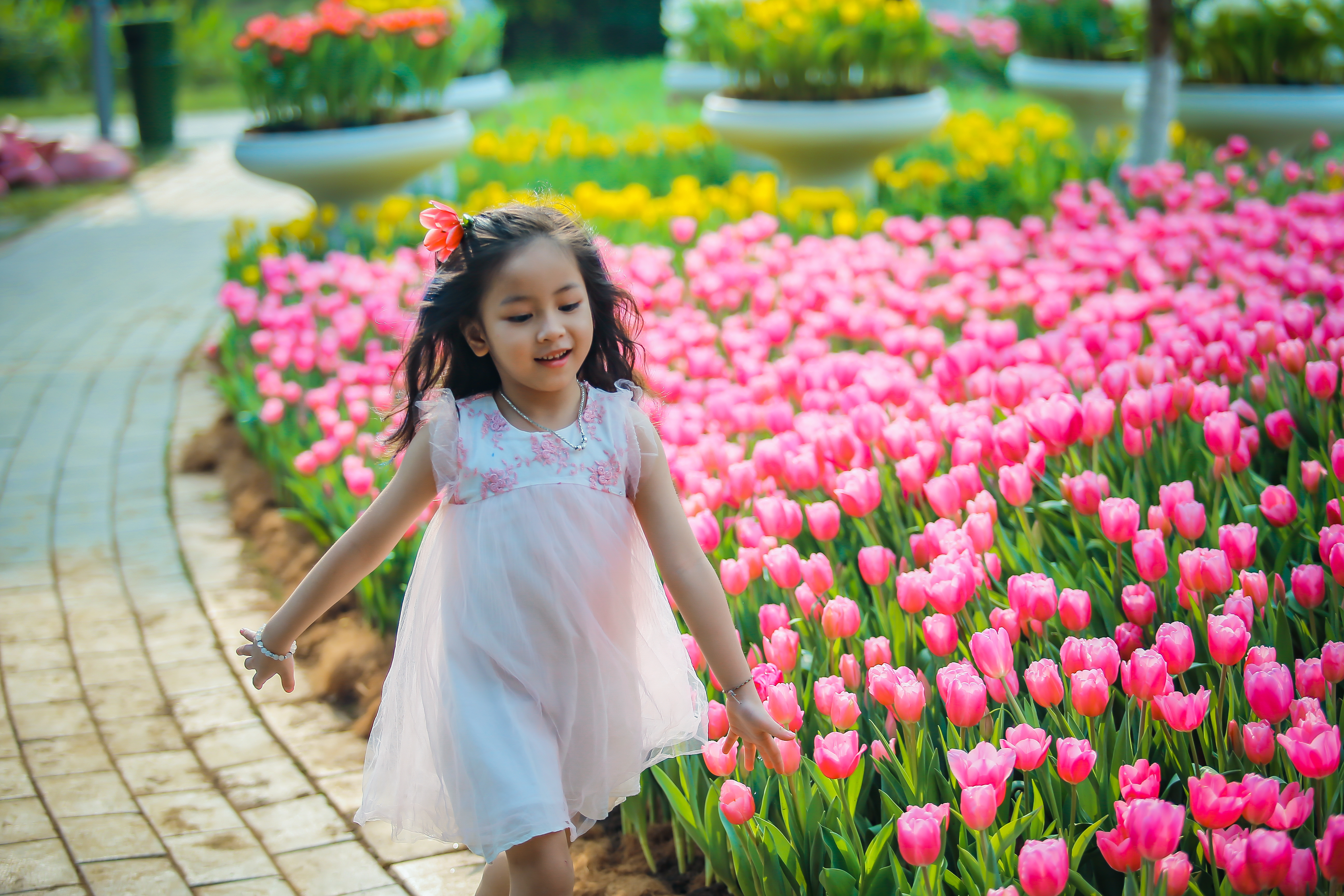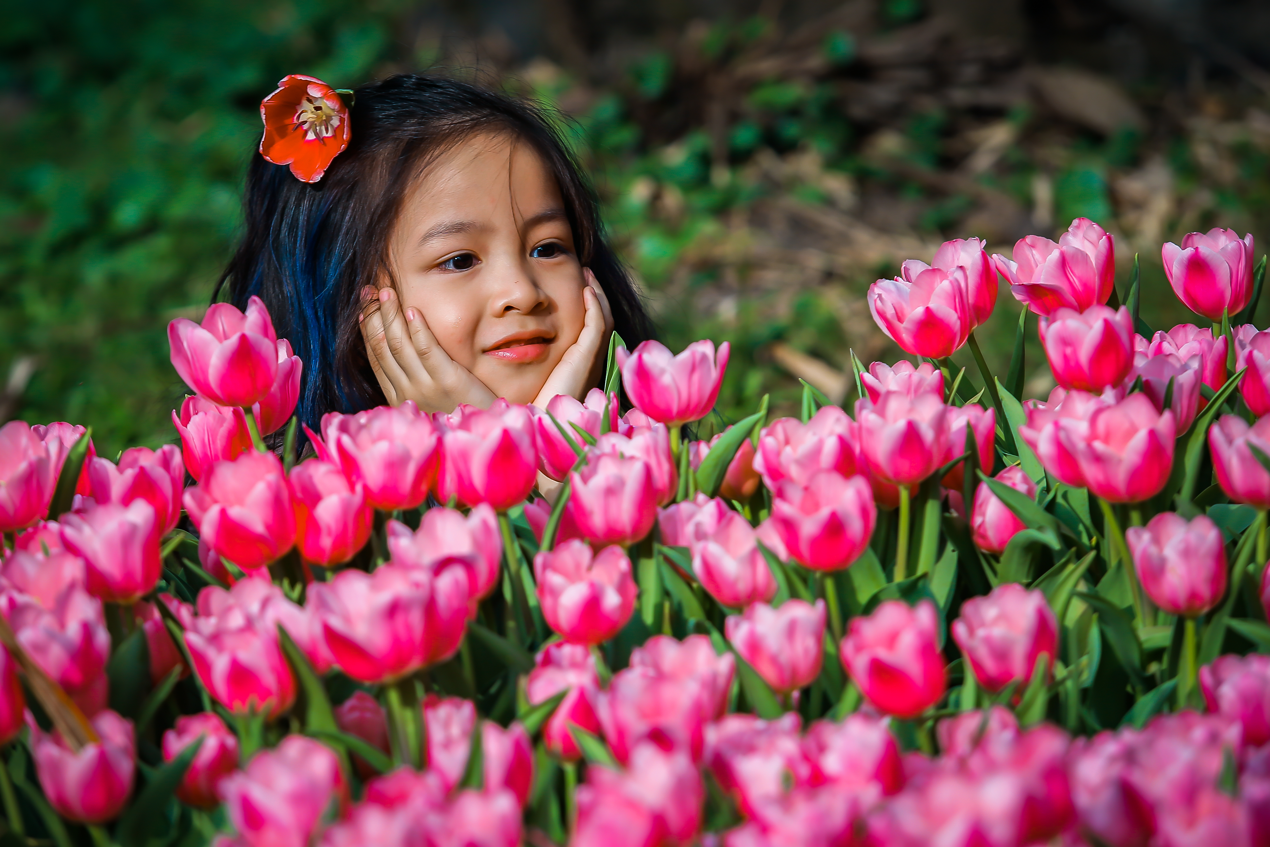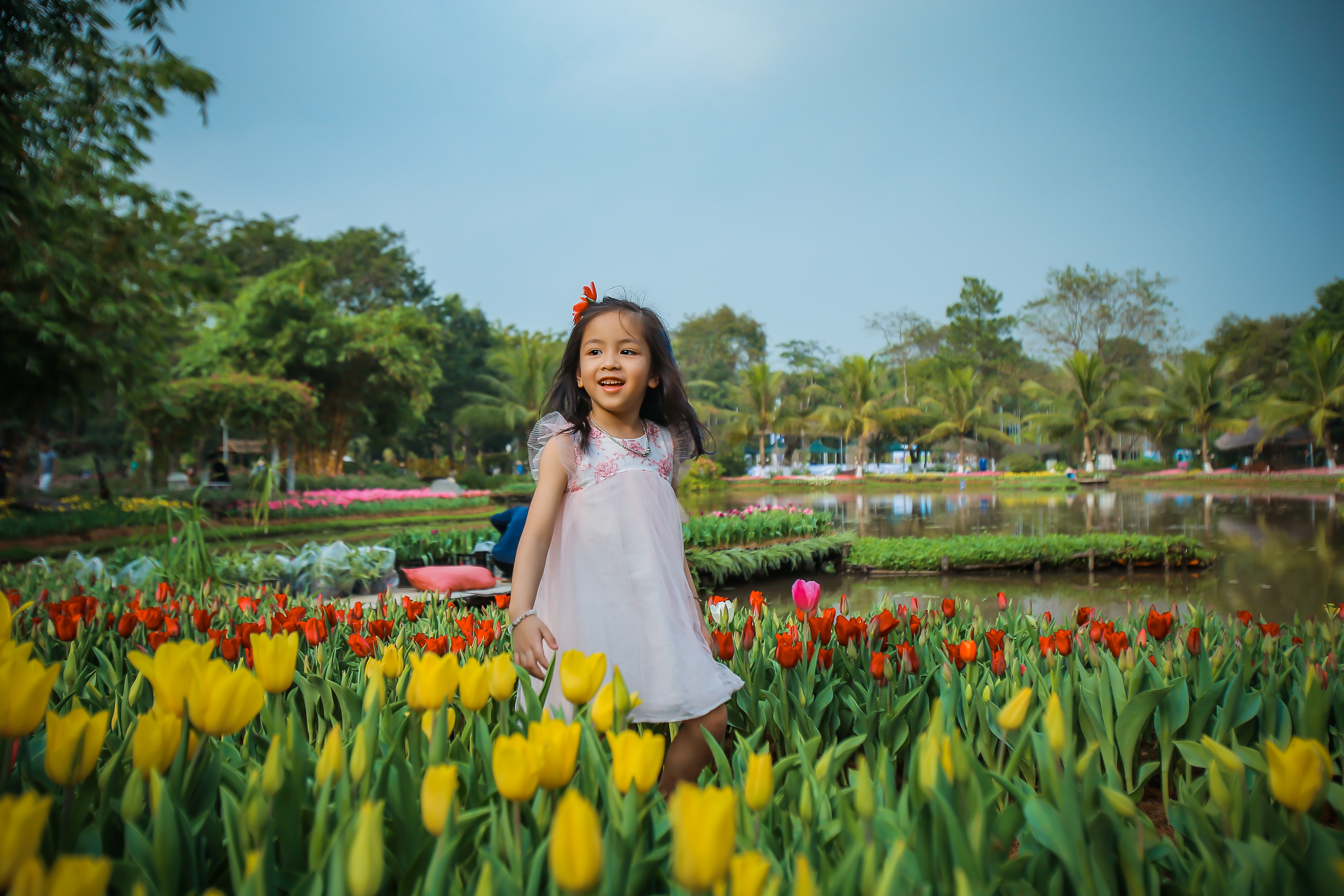 Những bông hoa tulip của Hà Lan làm các em tò mò, thích thú