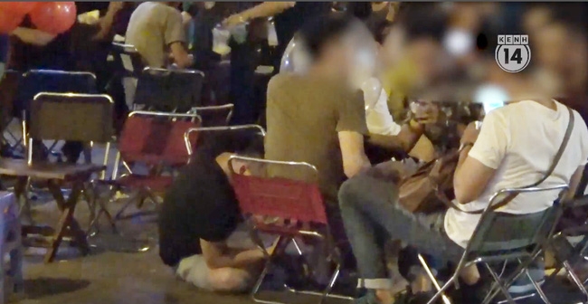 Một nam thanh niên ngã khỏi ghế và ngồi bệt xuống đất sau khi hút bóng cười.