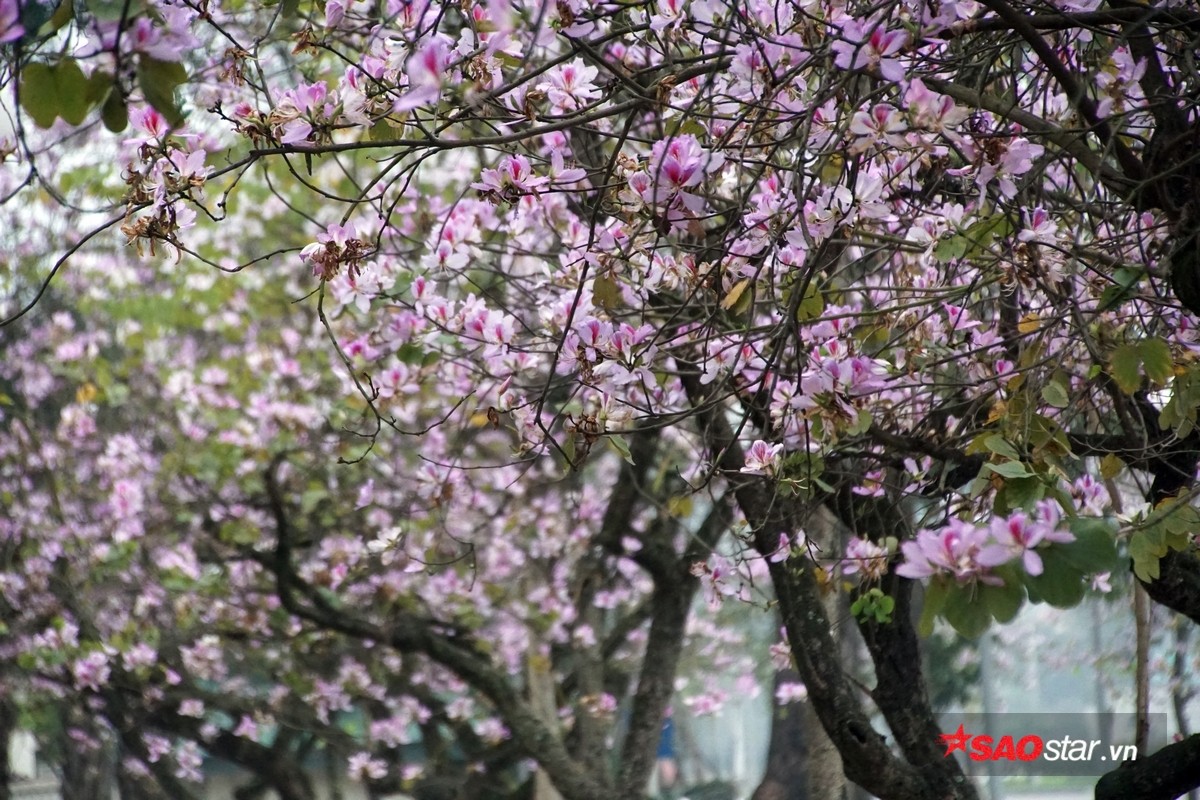 Những cây ban thân cành khẳng khiu, lá đã bay đi đâu hết nhường chỗ cho hoa nở rộ.