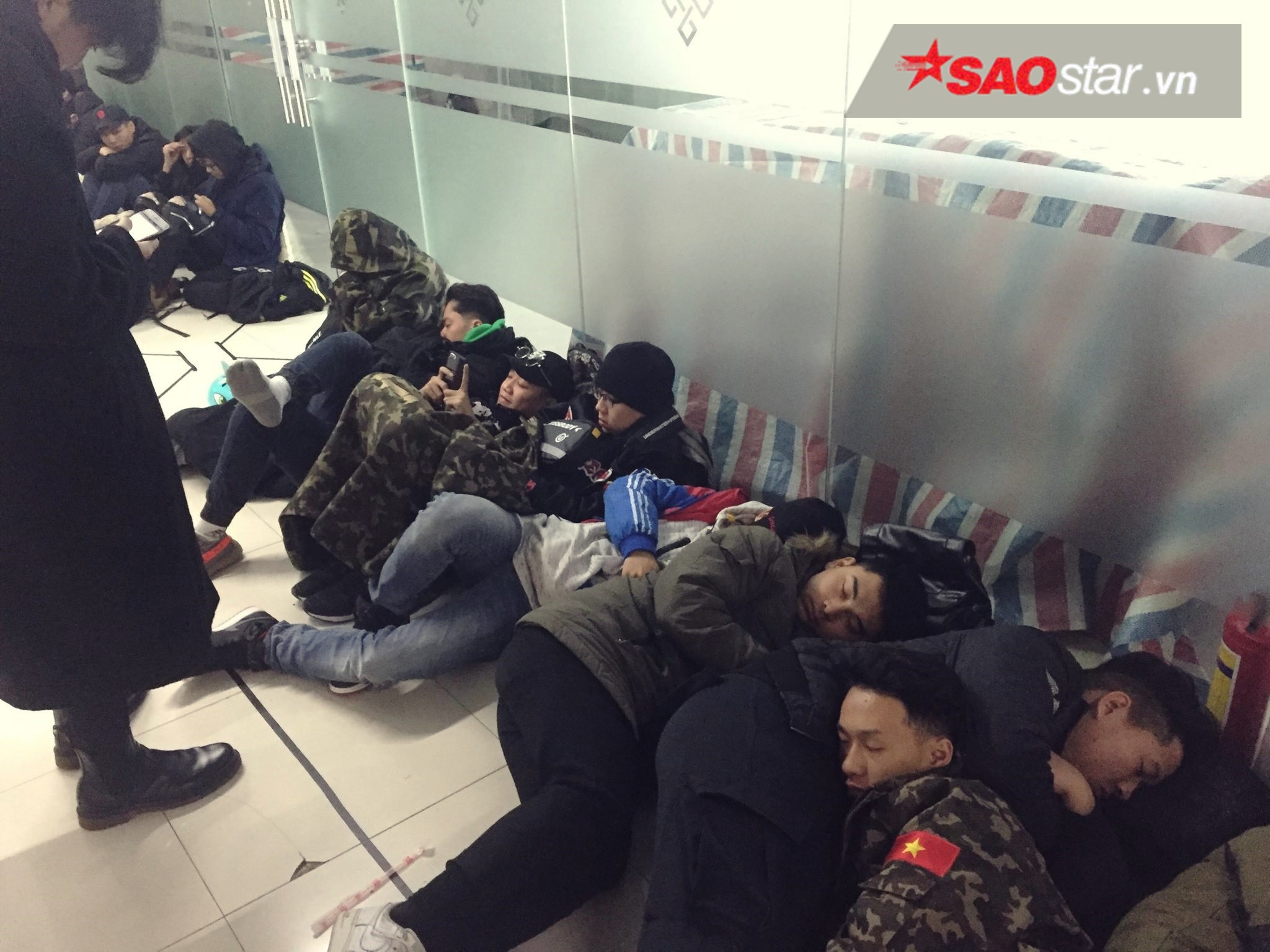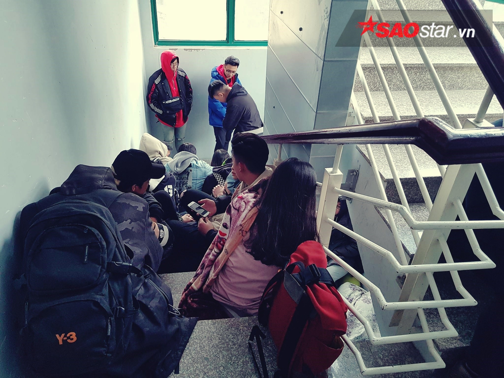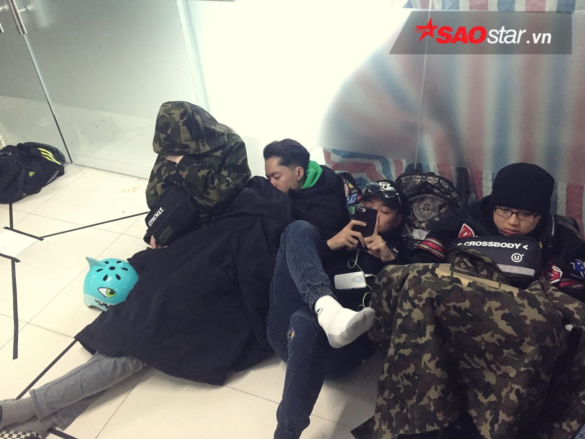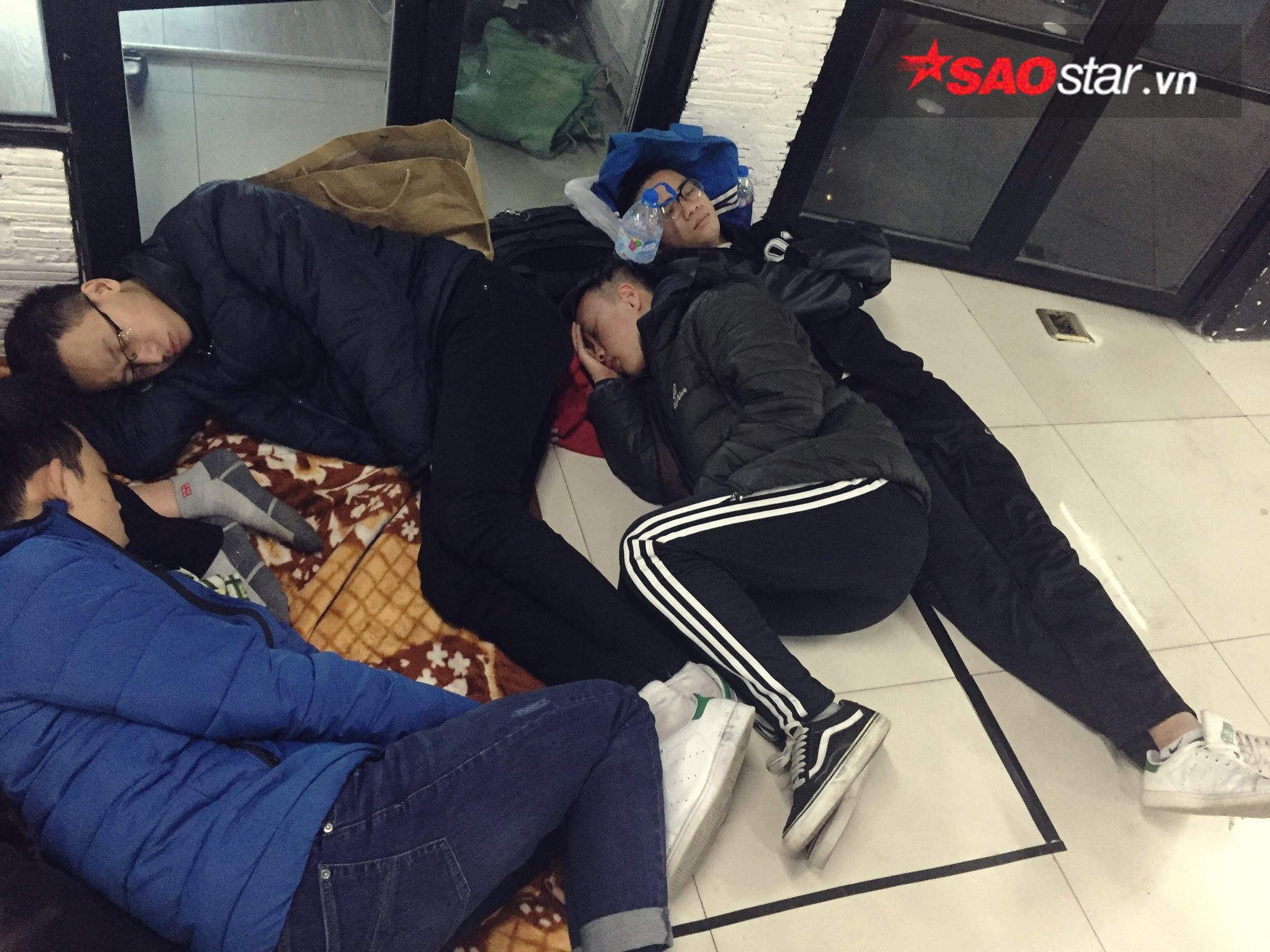 Ngủ đến sáng, các bạn trẻ lại ngồi dậy ở nguyên vị trí cũ chờ đợi.