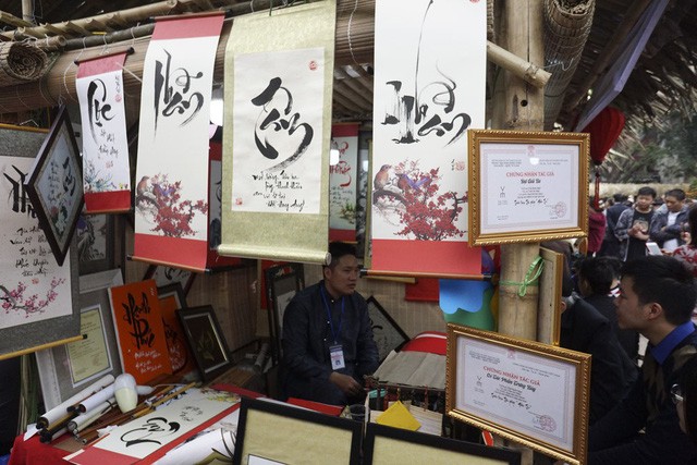 Năm nay, Ban tổ chức bố trí 63 gian hàng để các ông đồ ngồi cho chữ. Ảnh: VnExpress.
