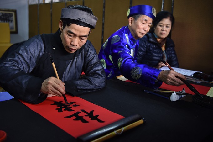 Những nét bút thư pháp như rồng bay phượng múa, với mong muốn mang lại cho người xin chữ may mắn trong dịp năm mới. Ảnh: VnExpress.