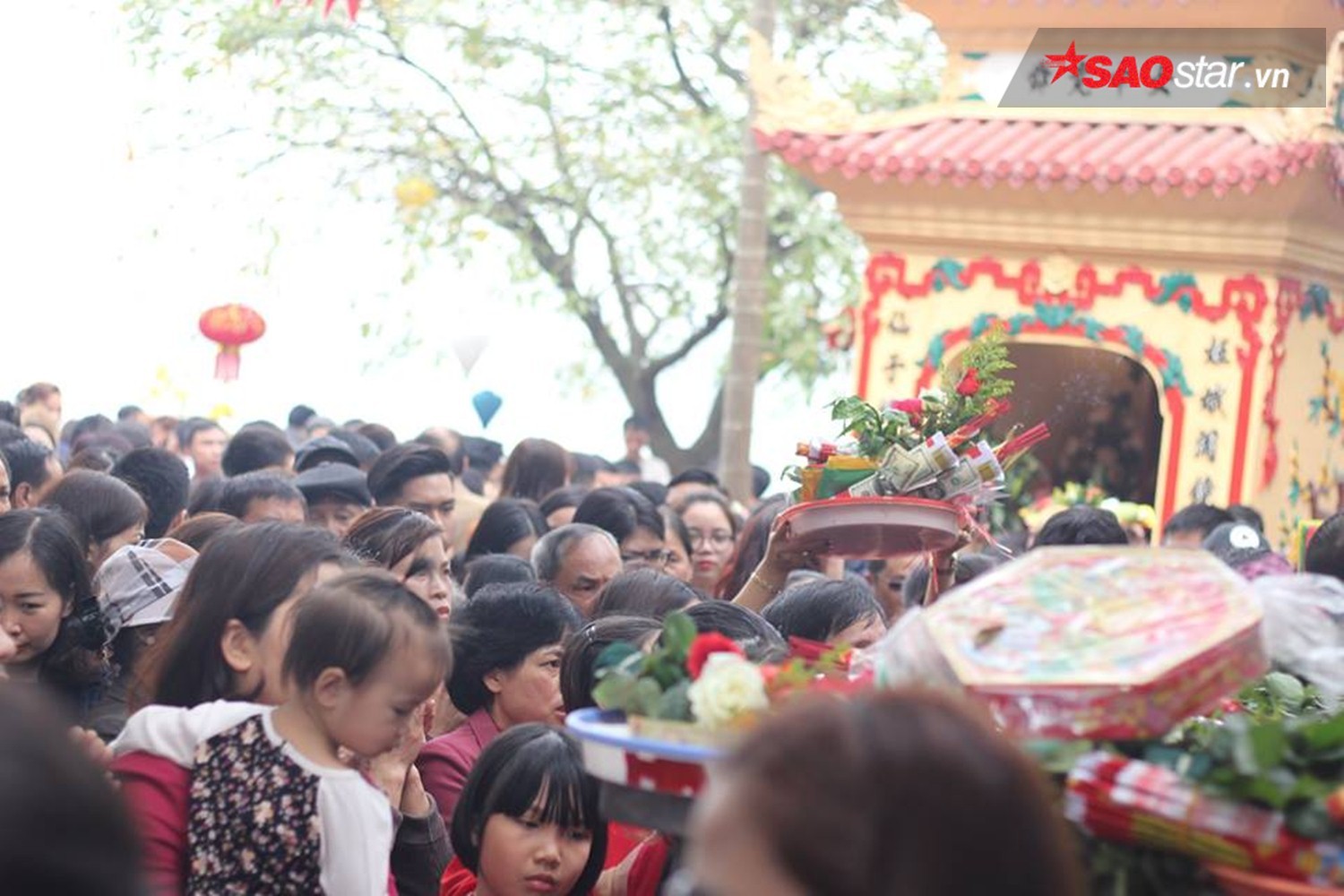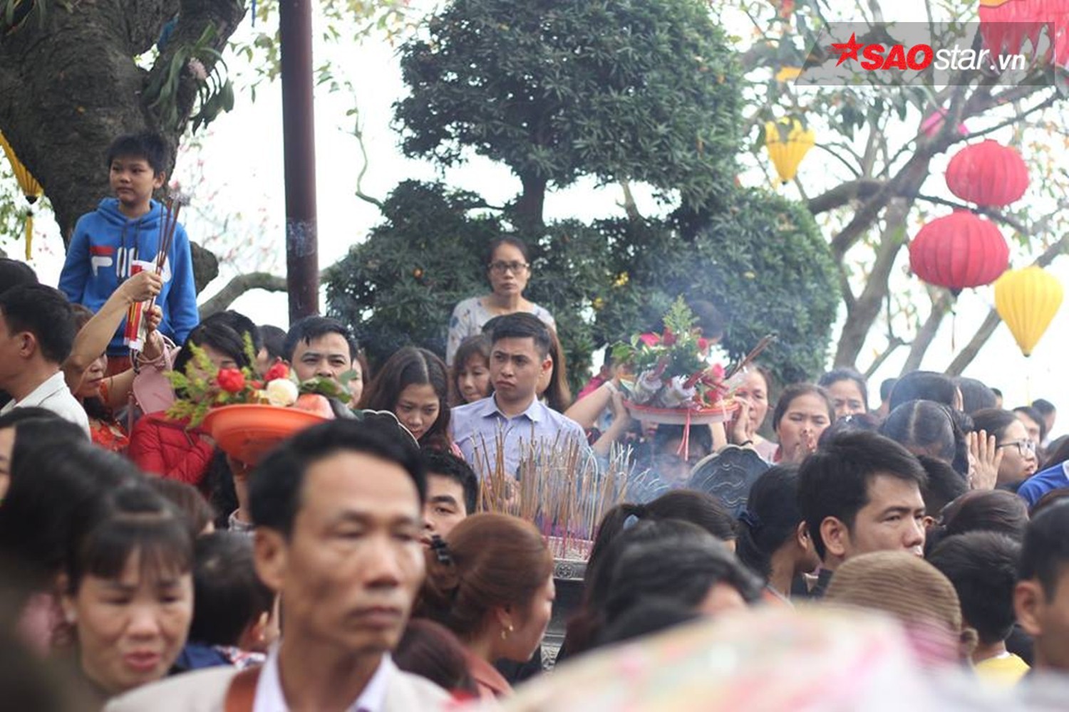Ghi nhận của PV, ngay từ buổi sáng, dòng người đổ về đây đã rất đông khiến mọi ngả đường dẫn về Phủ trở nên quá tải. Ngay từ cổng vào, biển người phải chen chân, nhích từng chút một. Càng về trưa, chiều, dòng người từ khắp nơi đổ về đây càng lúc càng đông. Khắp mọi ngả đường và lối vào nơi đây không còn một chỗ trống.