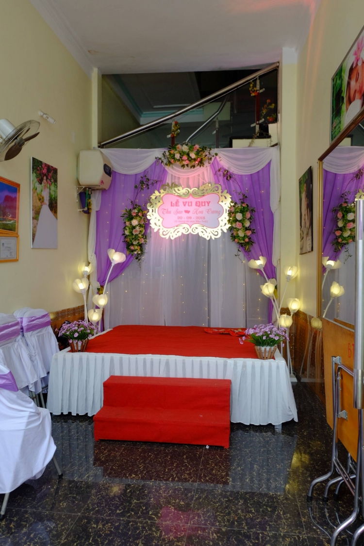 Nói về việc bức ảnh cưới của chị và anh Hoa Cương không xuất hiện ngoài phòng khách, chị Thu Sao cho biết vì hết chỗ treo nên ảnh của cả hai treo trong buồng.