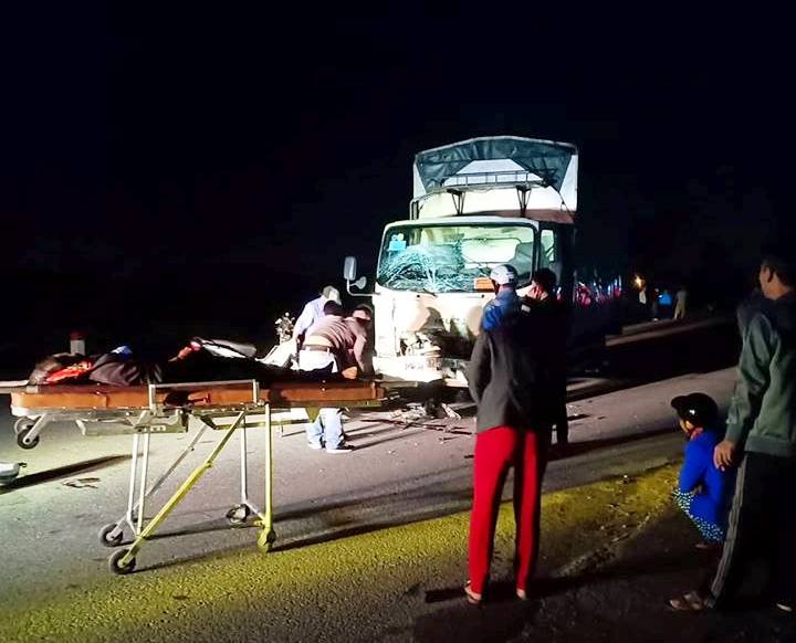 Cú va chạm mạnh khiến cả 3 người ngồi trên xe máy ngã xuống đường tử vong tại chỗ. Tại hiện trường chiếc xe máy nát bét, chiếc ô tô bị hư hỏng phần đầu.
