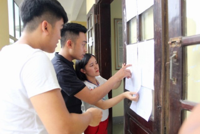 Các thí sinh Nghệ An xem số báo danh trước khi vào phòng