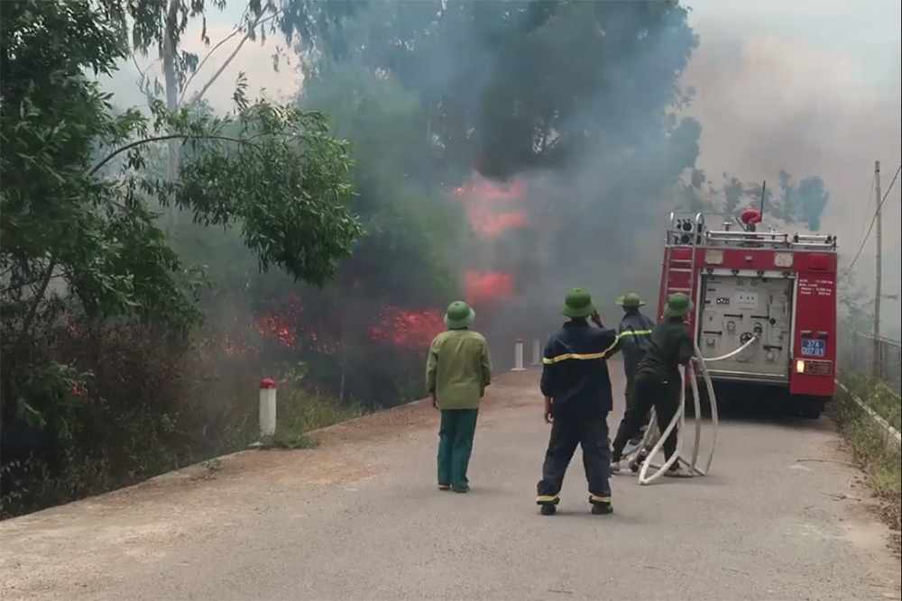 Cơ quan chức năng tiến hành chữa cháy ở xã Nam Kim