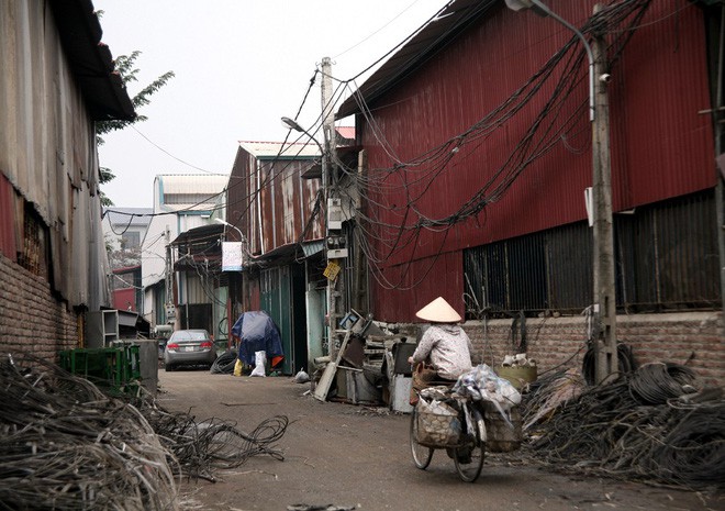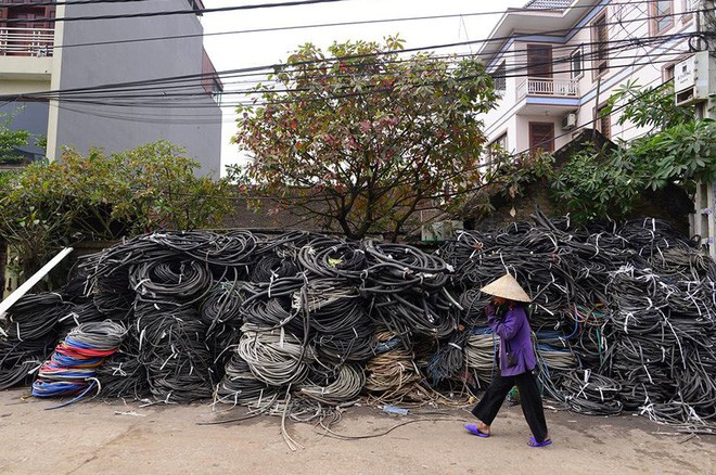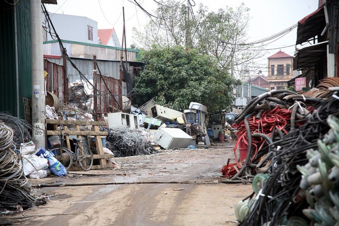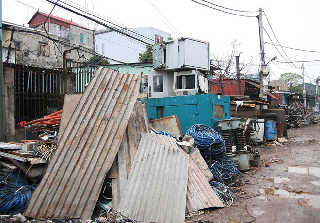 Khắp các con đường, ngõ xóm trong làng đều là những bãi phế liệu được phân theo chủng loại. Với những người dân nơi này, cảnh tượng các loại vật liệu tràn lan như thế này đã quá quen thuộc.