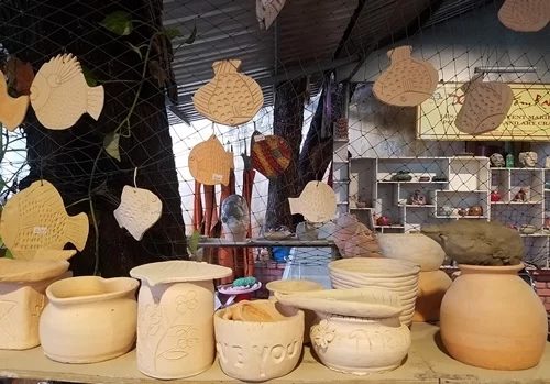 Các sản phẩm gốm Raku mà trẻ khuyết tạo nên. Ảnh: Võ Thạnh