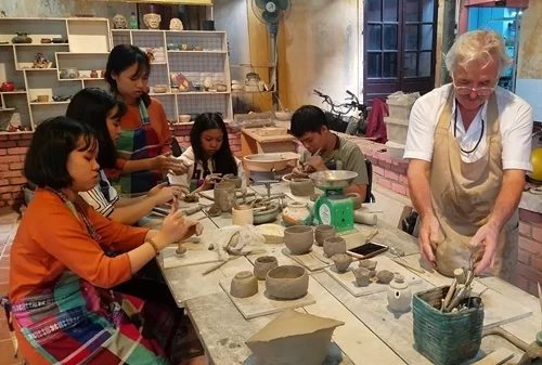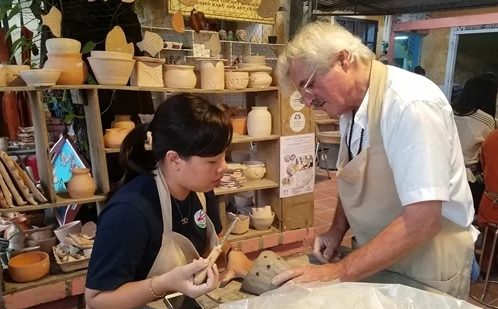 Ông Oliver chỉ các công đoạn làm gốm cho học viên. Ảnh: Võ Thạnh