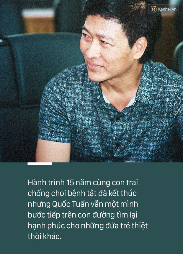 Không những thế, Quốc Tuấn còn chia sẻ anh đang giúp đỡ một số hoàn cảnh khó khăn như Bôm. Hành trình 15 năm cùng con trai chiến đấu bệnh tật đã kết thúc nhưng Quốc Tuấn vẫn một mình bước tiếp trên con đường tìm lại hạnh phúc cho những đứa trẻ thiệt thòi khác. “Khi tham gia chương trình Điều ước thứ 7, tôi cũng rất băn khoăn. Nhưng nghĩ lại thì đây là động lực cho những gia đình thiệt thòi khác, cố gắng phấn đấu và hiểu rằng xã hội rất sẵn sàng chia sẻ. Có thể là các bé chưa được nhận. Nhưng biết đâu khi chương trình lên sóng sẽ lan toả ra và rất nhiều trường khác sẽ thấy được điều đấy.