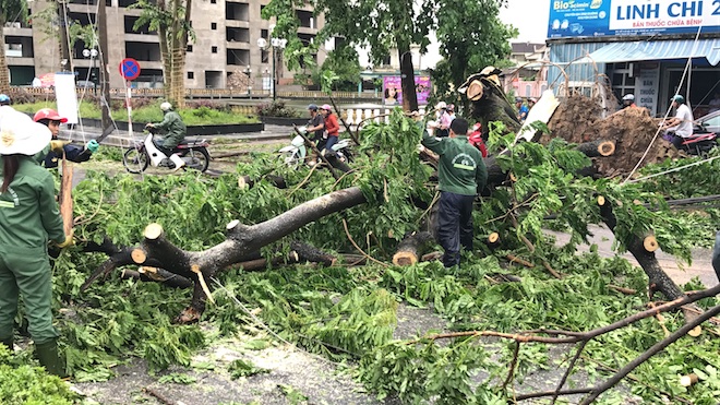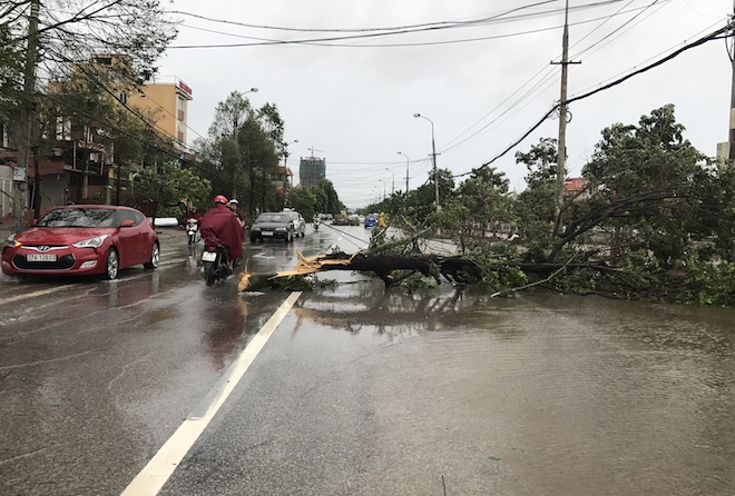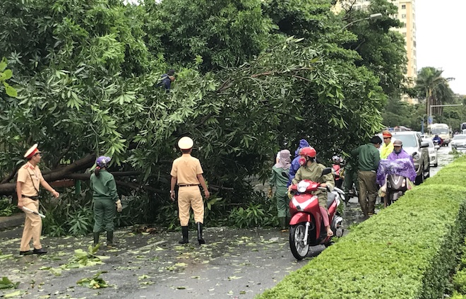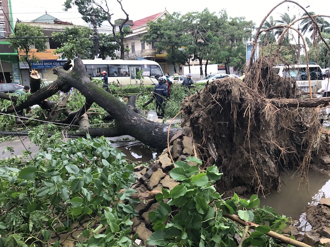 Cây xanh lớn đổ đè chắn ngang tuyến đường Lê Lợi (quốc lộ 1A cũ) đã khiến giao thông trên tuyến này bị hỗn loạn, ách tắc. Các cơ quan chức năng đã tập trung chặt các cây xanh trên tuyến đường quan trọng để giải toả giao thông.