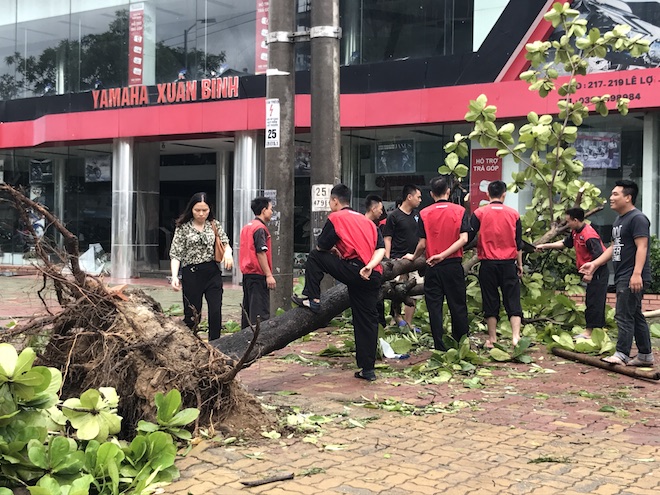 Do bão đi qua làm thiệt hại nhiều tài sản nên trong sáng nay, nhiều cơ quan đơn vị đã cho nhân viên tập trung để dọn dẹp, khắc phục tài sản thiệt hại sau bão.
