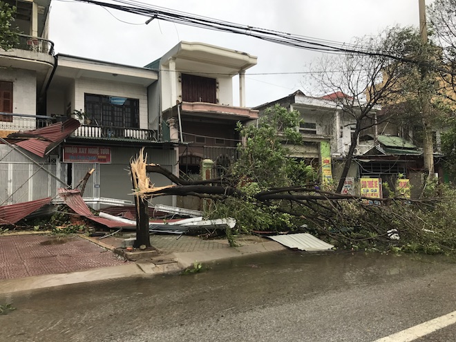 Cơn bão số 2 đổ bộ vào TP. Vinh (Nghệ An) vào rạng sáng 17/7 đã khiến nhiều tuyến đường trên địa bàn bị cây xanh đổ chắn ngang, giao thông hỗn loạn. Nhiều nhà dân bị tốc mái che, hư hỏng.