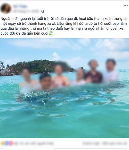 Hay cuối tháng 11, trong bức ảnh cùng tập thể tắm biển, cô gái đã ghi lại câu nói: “Ngoảnh đi ngoảnh lại tuổi trẻ rồi sẽ dần qua đi, hoài bão thanh xuân trong ta một ngày sẽ trở thành hàng xa xỉ. Liệu rằng khi đó, ta có tự hỏi suốt bao năm qua, đâu là những thứ mà ta theo đuổi, hay là nhận ra ngồi nhầm chuyến xe cuộc đời khi đã gần bến cuối”. Những câu chia sẻ đầy nước mắt, giờ đây khiến mọi người nhói lòng khi nhớ về cô bạn của mình.