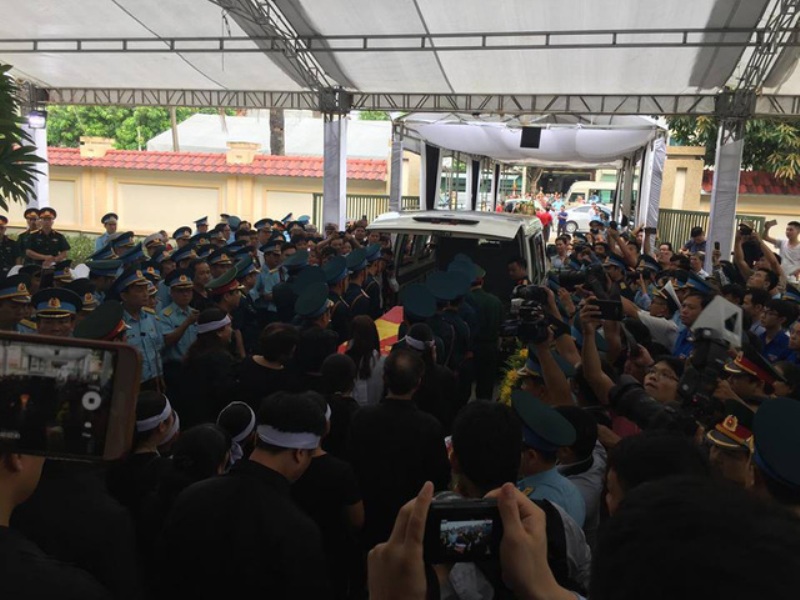 Sau lễ truy điệu, linh cữu của hai phi công được đưa đi hỏa táng tại Đài hóa thân Hoàn vũ ở Hà Nội.