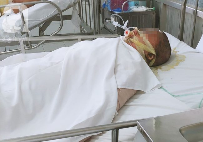 Chị C.T.K.A (vợ anh M.) ị thương nặng ở vùng mặt nên bác sĩ phải đặt nội khí quản hô hấp. Ảnh: báo Tổ Quốc.