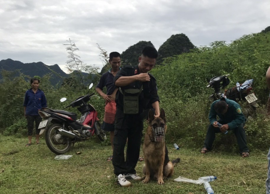Công an sử dụng chó nghiệp vụ vây bắt nghi can - (Ảnh: Người đưa tin).