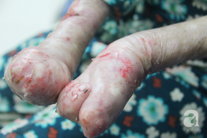 Cơ thể bị lở loét khắp người khiến Dương vô cùng đau đớn.