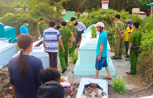 Phát hiện có điểm đáng nghi ngờ, nhân viên bệnh viện cùng một số người dân đã trình báo với công an địa phương. Nhận được tin báo, chiều 9-2, Công an tỉnh Kiên Giang kết hợp với Công an Thị trấn Kiên Lương điều tra, tìm hiểu sự việc. Sau đó, lực lượng tiến hành quật mộ và mổ tử thi.