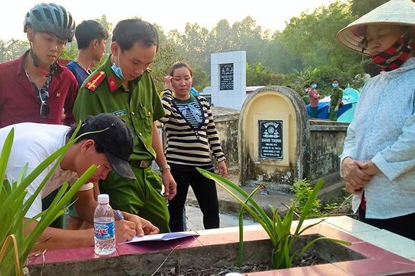 Lực lượng Công an tiến hành quật mộ và mổ tử thi. Xác định nguyên nhân dẫn đến bé trai tử vong.