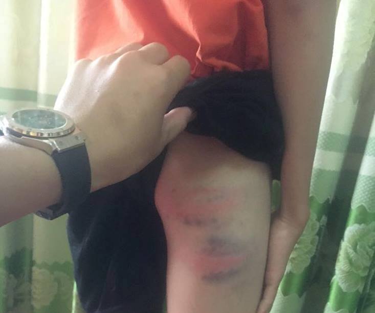 Cháu tinh thần hoảng loạn, cơ thể đầy thương tích, bầm tím, sưng phù, nặng nhất là ở vùng mặt, hai tai, đùi. Theo gia đình cho biết, cháu bị mẹ kế đánh.