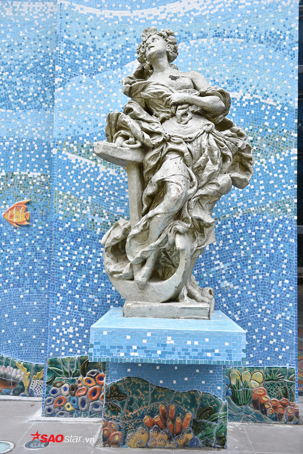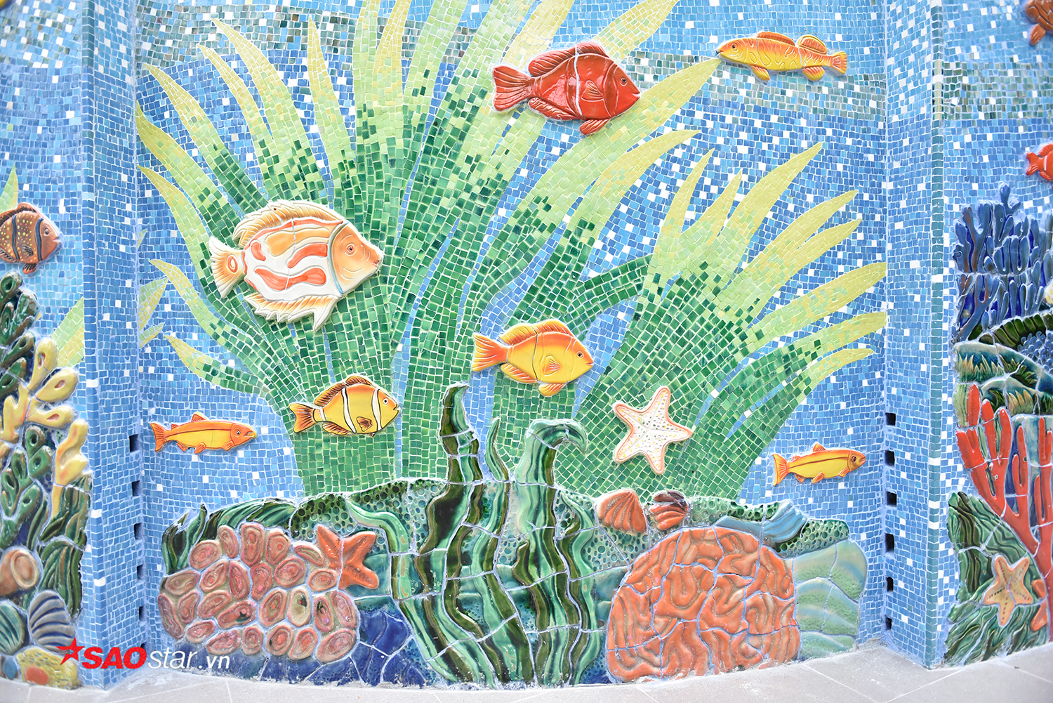 Những bức tranh làm từ hàng trăm ngàn mảnh gốm đã khiến khu nhà gương được lột xác. Các bức tranh được tái hiện sống động.