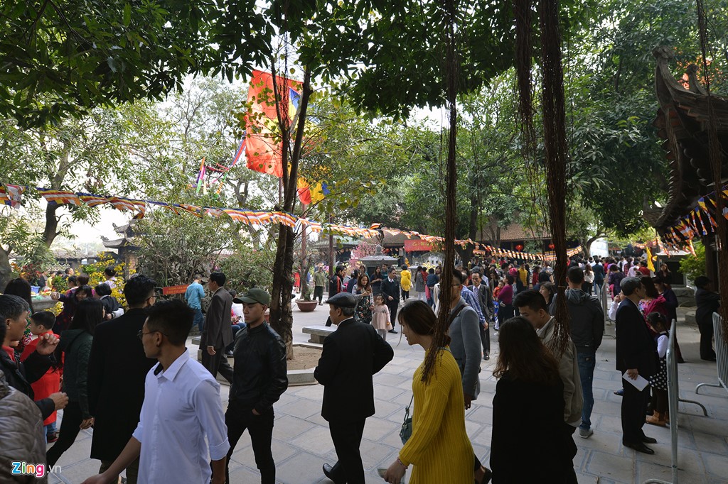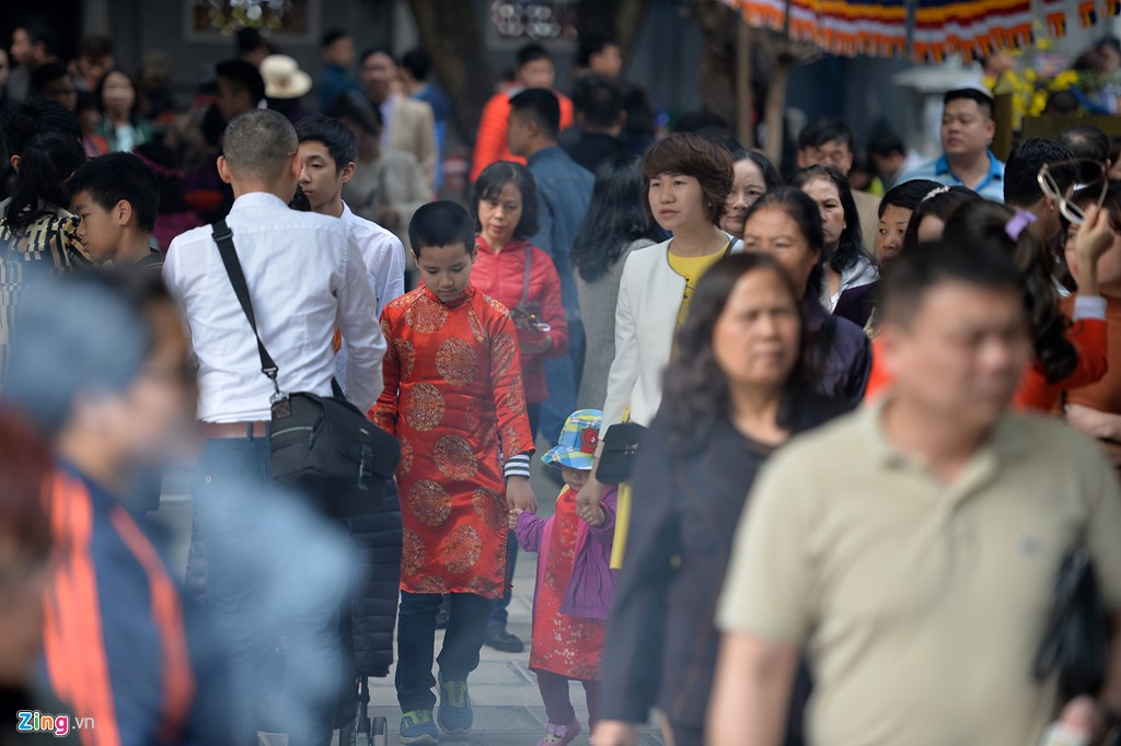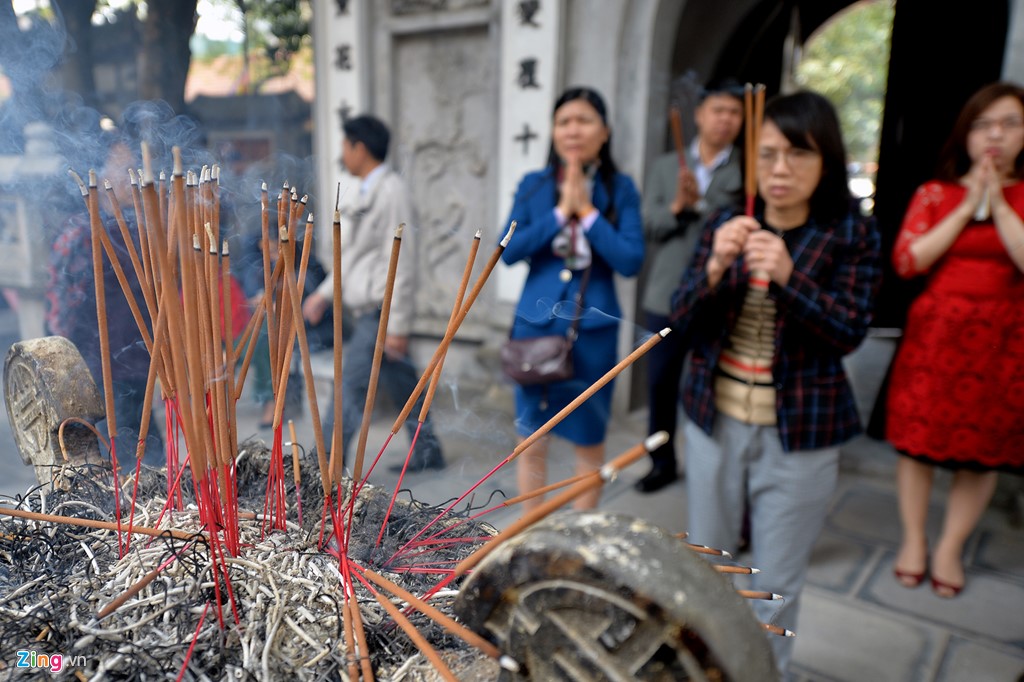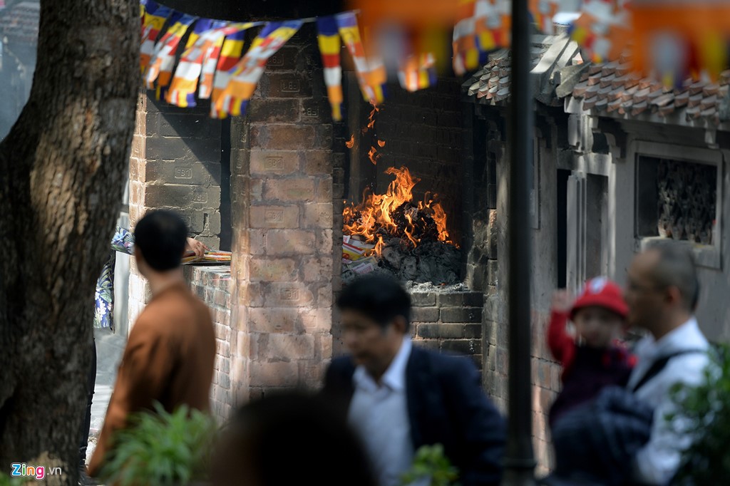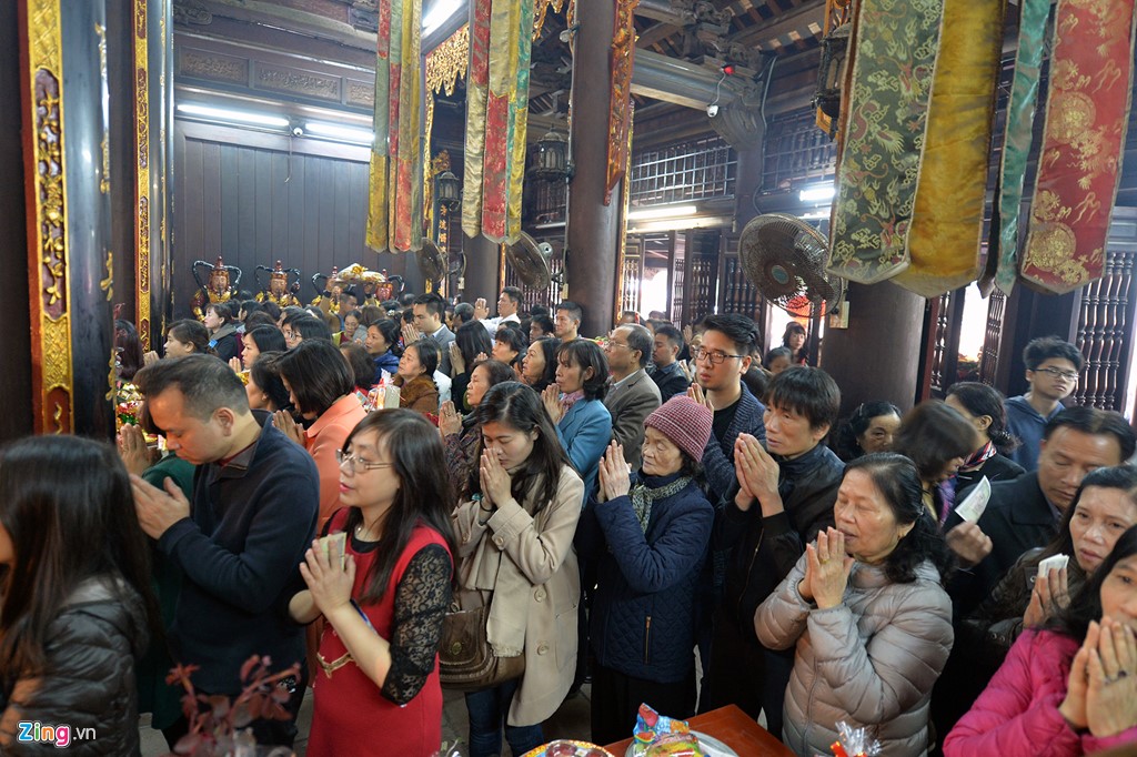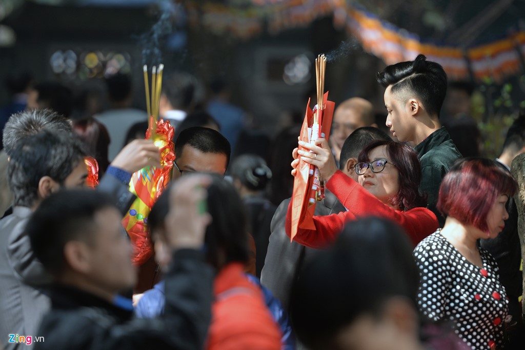 Nhiều thời điểm trong buổi sáng, lượng khách đổ về quá đông, ai muốn thắp hương phải giơ cao vượt đầu đi vào, tránh khói bay vào mắt người khác.