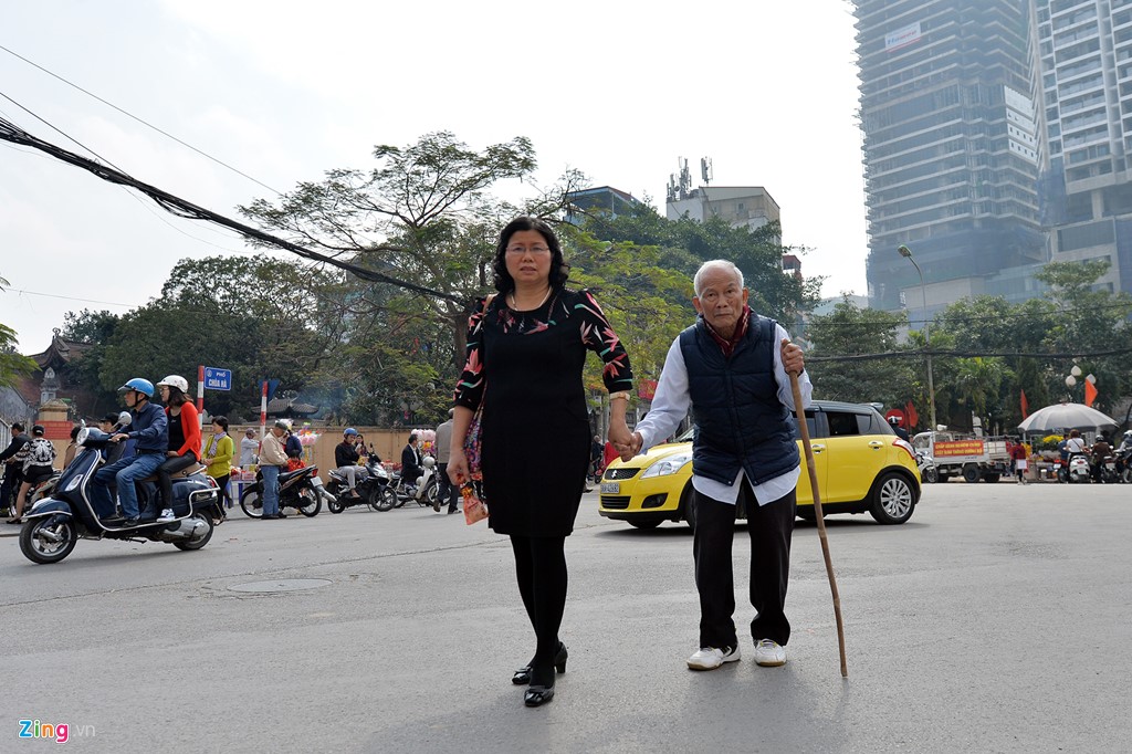 Ông Vũ Trọng Hướng (84 tuổi) từ quê Nam Định ra Hà Nội ăn Tết với con cháu. Lần đầu ông được đi lễ tại chùa Hà: “Tôi đến đây để cầu sức khỏe và bình an cho năm mới”.