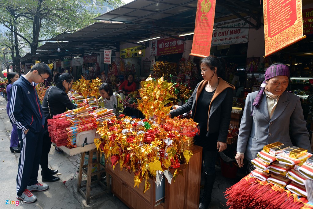 Bên ngoài cổng chùa các dịch vụ bán đồ lễ sớm mở cửa phục vụ khách ngay từ đêm giao thừa.