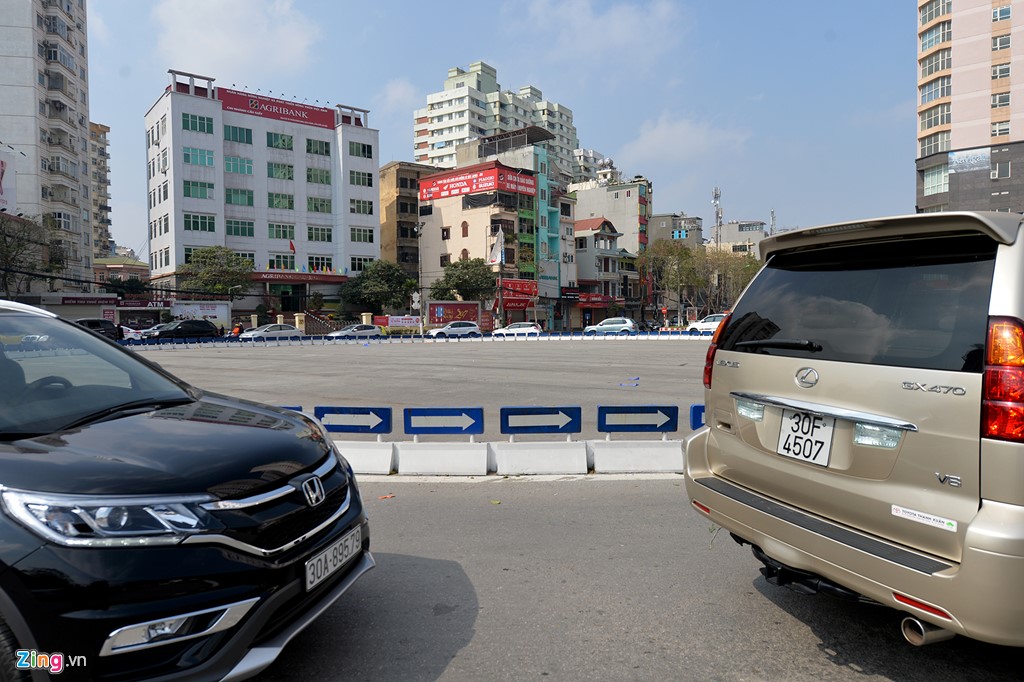 Bên ngoài cửa, ôtô của các gia đình đi lễ xếp vòng tròn các hướng. Ngày đầu năm, người dân “được phép vi phạm” giao thông khá nhiều trên các tuyến phố ở Hà Nội.