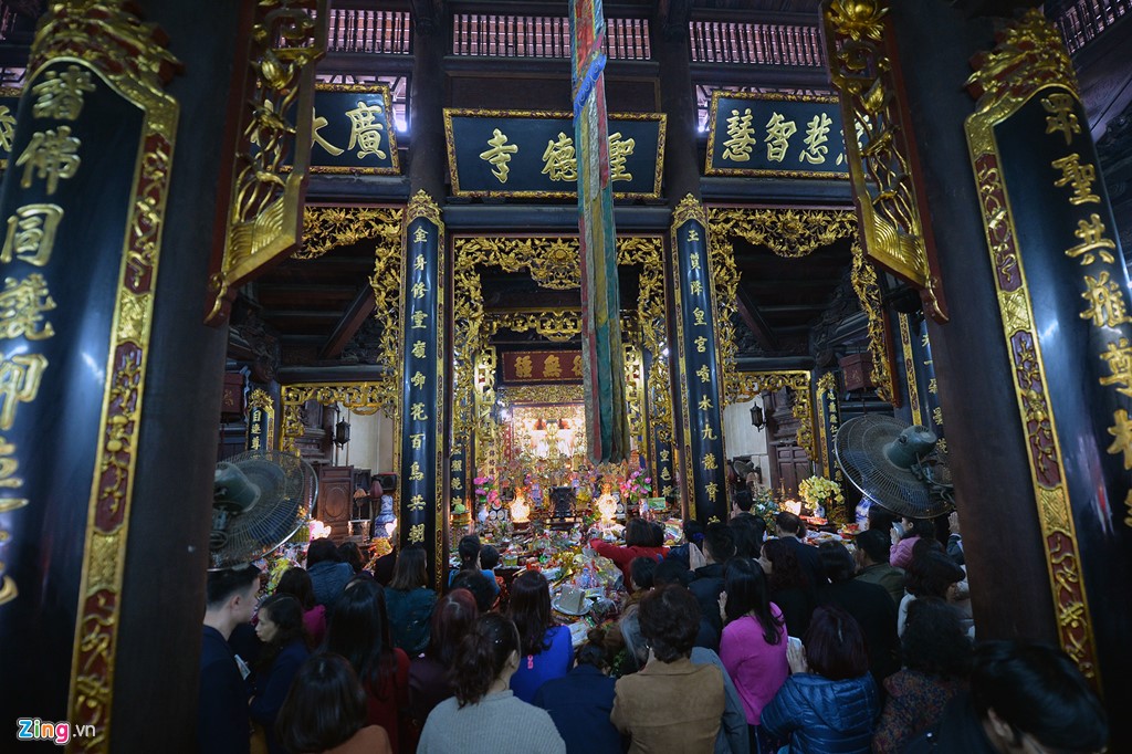 10h ngày mùng 1 Tết, gian Chính điện của chùa đông nghịt khách. Trước đây, vào ngày này chủ yếu là các bạn trẻ đến cầu duyên thì nay du khách có mặt tại đây ở mọi lứa tuổi.
