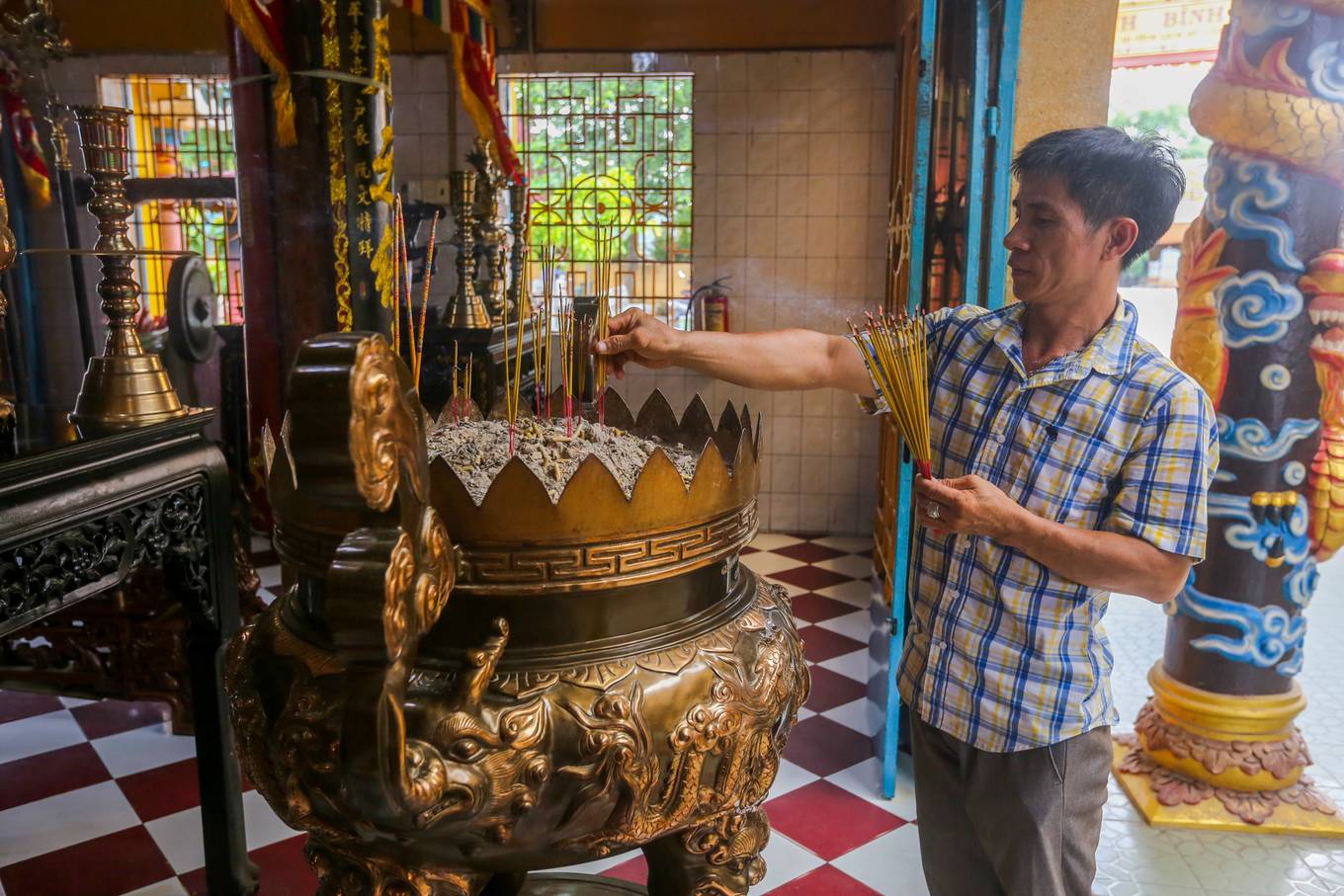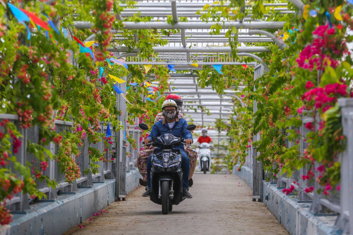 Cuối năm 2017, cây cầu qua đình Bình Đông được khánh thành, giúp người dân không còn cảnh “qua sông lụy đò”. Cây cầu dài hơn 100 m, hai bên lan can được tô điểm với sắc hoa giấy, hoa sử quân tử.