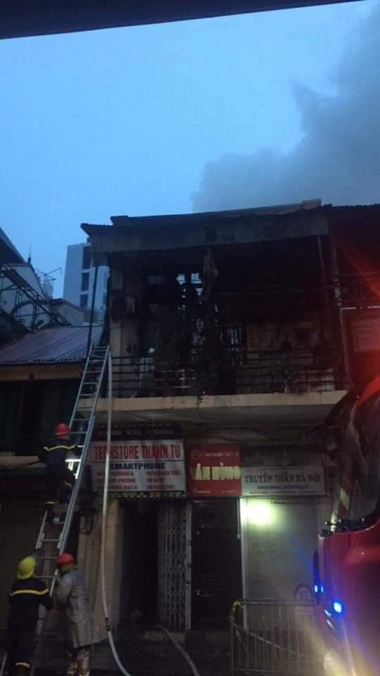 Ngôi nhà 2 tầng trên phố Hàng Ngang tiếp tục bị cháy vào sáng nay