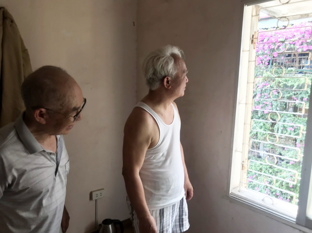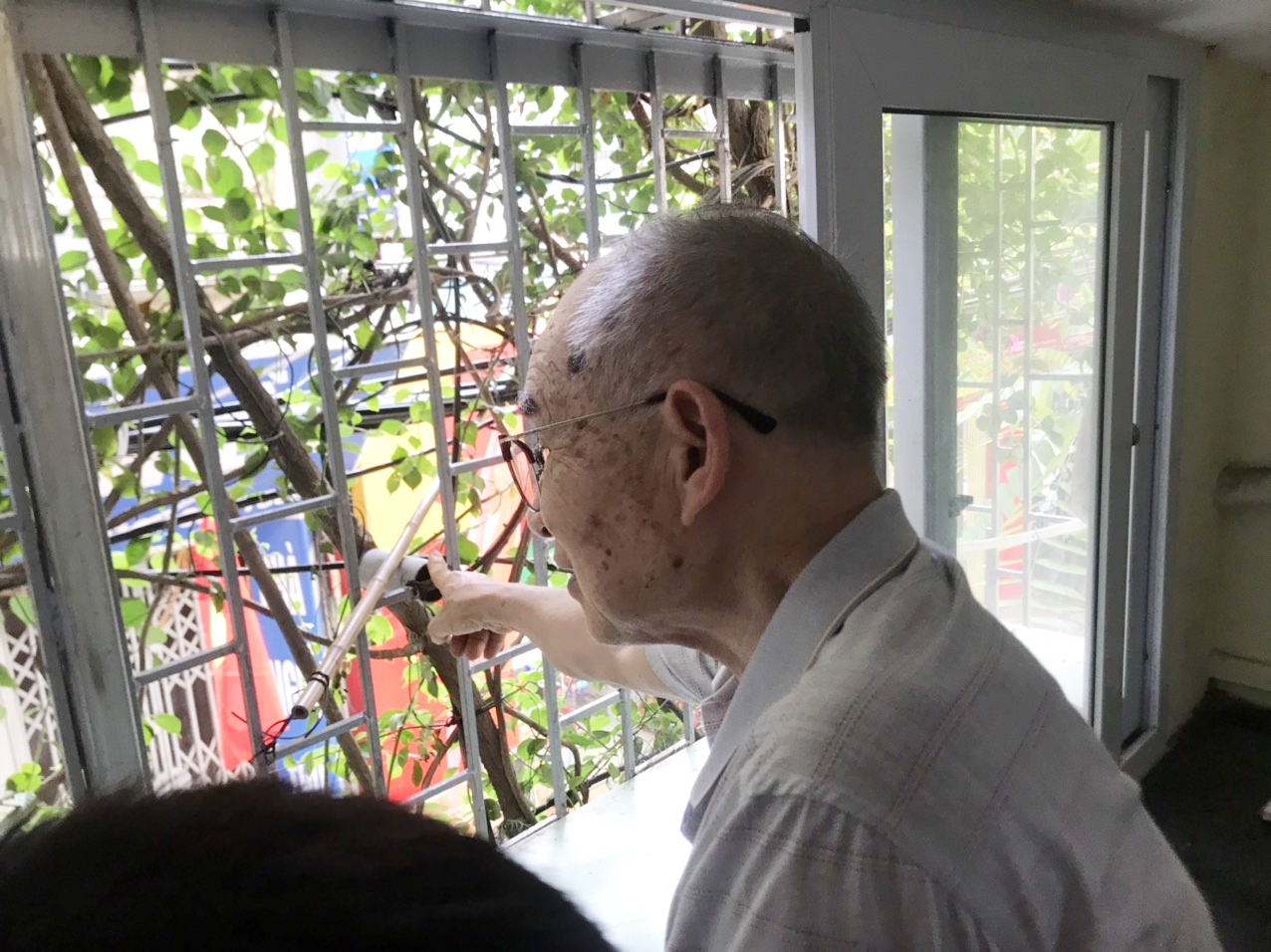 Cụ ông này cũng có không ít kỷ niệm vui bên giàn hoa giấy của mình. Mùa hè mọi người đi đường thi thoảng vẫn đứng nán lại ngắm nhìn. Có người thì đứng hóng mát giữa trời nắng nóng.