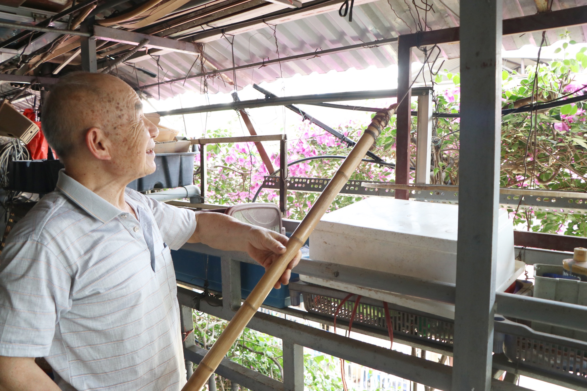 Ông Tầng đã dành 30 năm chăm sóc giàn hoa giấy bao quanh ngôi nhà của mình.