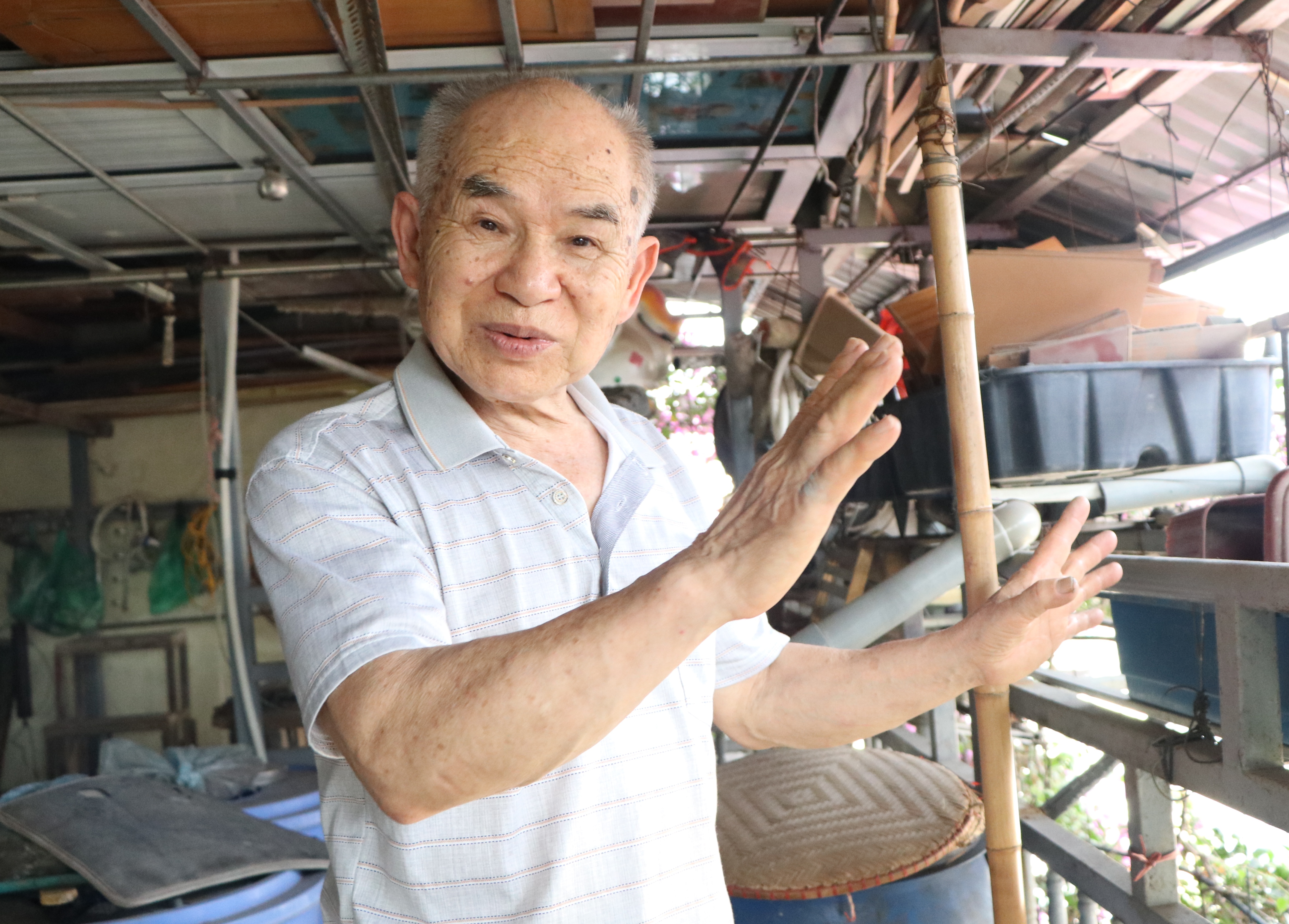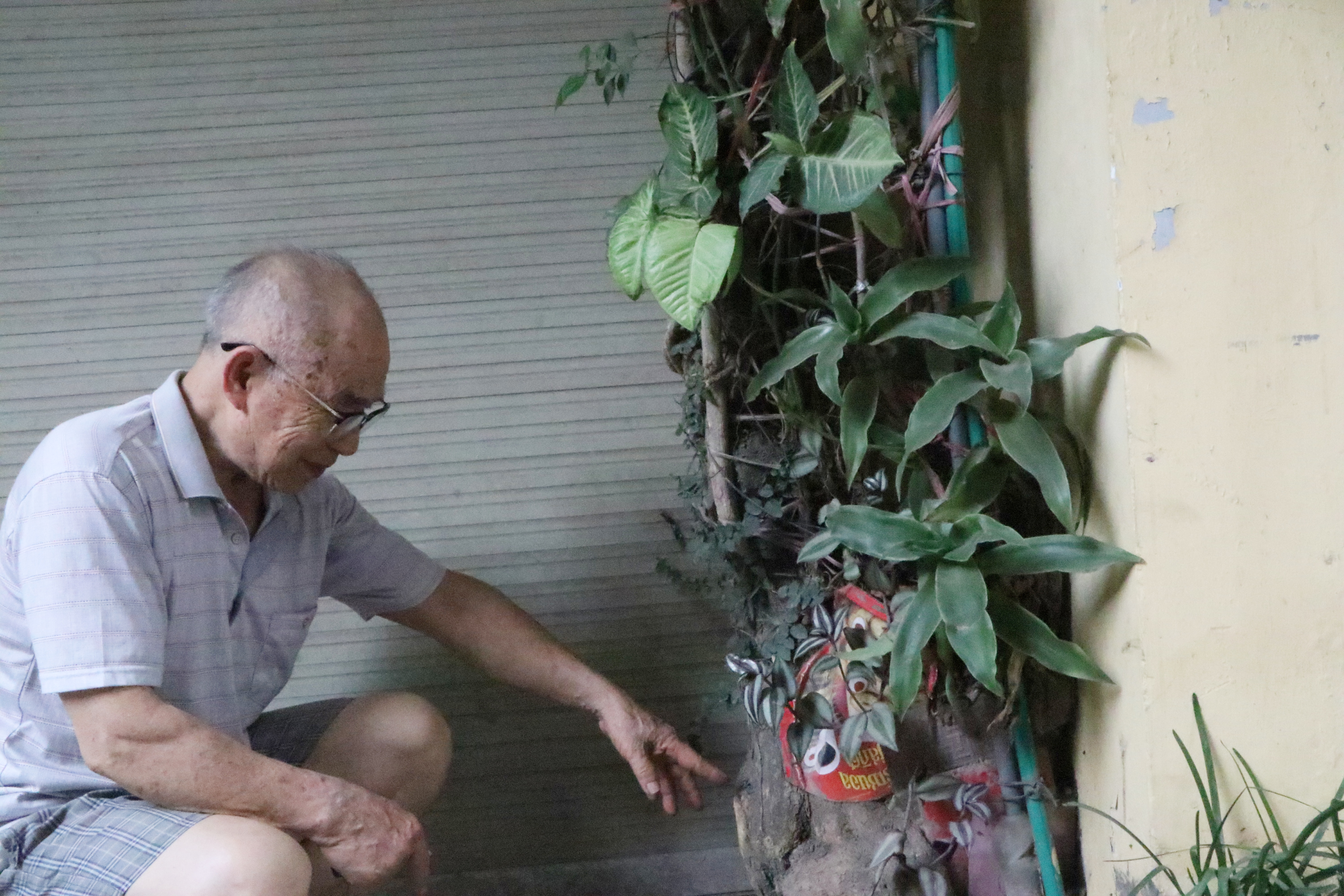 “Nhiều cửa hàng xung quanh bảo nhờ có cây của bác mà chúng cháu ở đây cũng được mát lây. Nhiều người đứng trú tránh nóng bảo ‘ôi mát quá’. Có ông hàng xóm có lần bảo ‘lúc nào mời bác sang bên này chơi thứ nhất bác thiệt thòi vì trồng hoa nhưng không được ngắm. Tôi bên này bạn bè thường đến thưởng trà ngắm hoa rất đẹp. Khi sang tận nơi nhìn giàn hoa giấy của mình bung nở đẹp rất thích mắt. Tôi trồng mọi người được thưởng thức cái đẹp. Tôi thì hưởng được không gian đáng sống trong nhà”, vị giáo viên già vui vẻ nói.