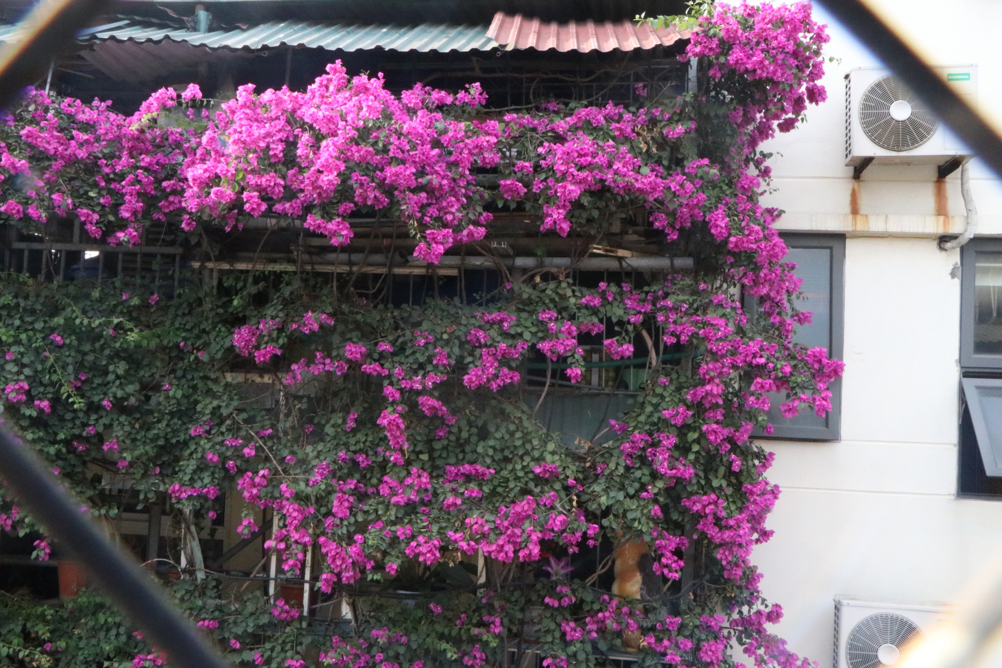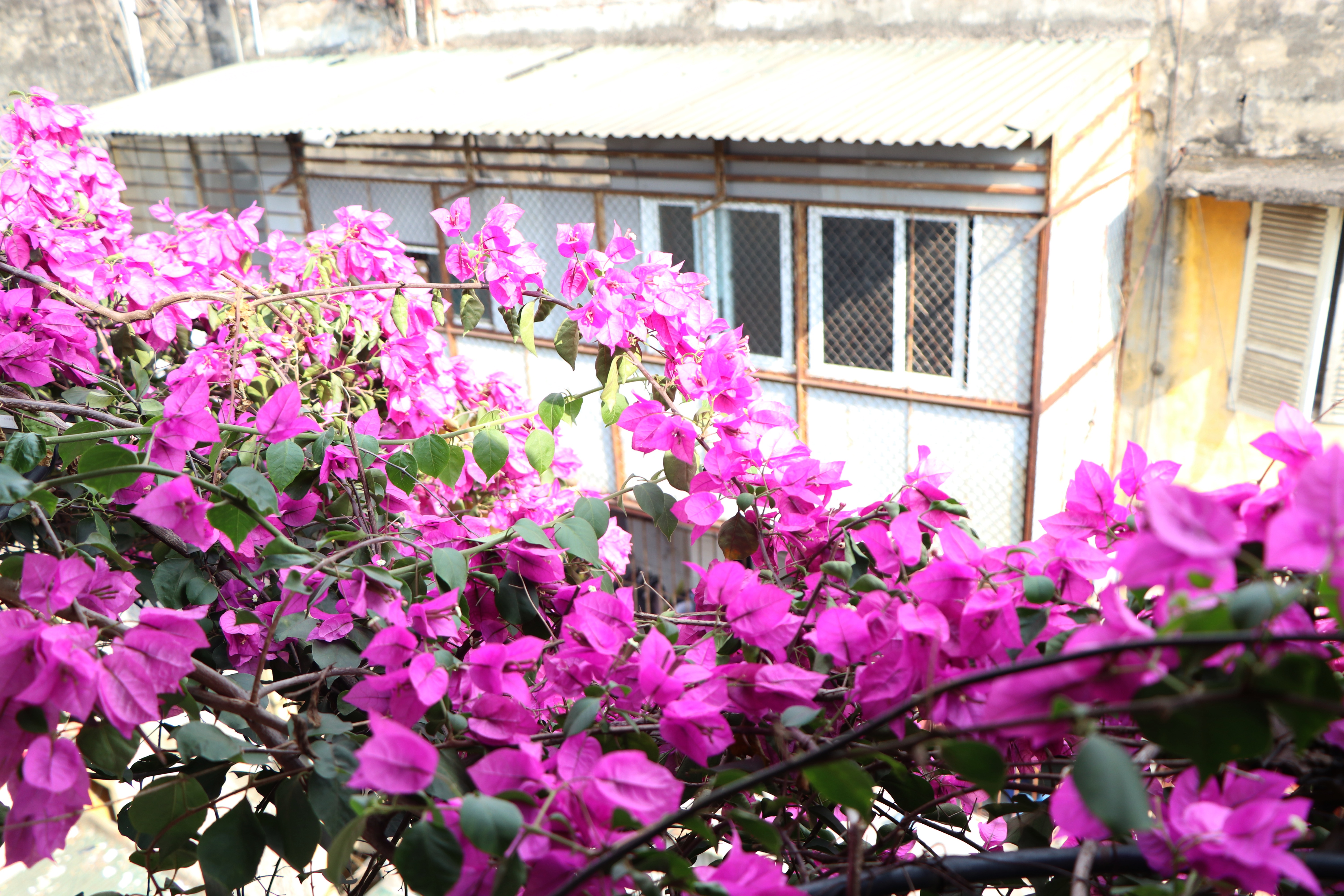 Toàn bộ ngôi nhà phủ một màu xanh của giàn hoa giấy.