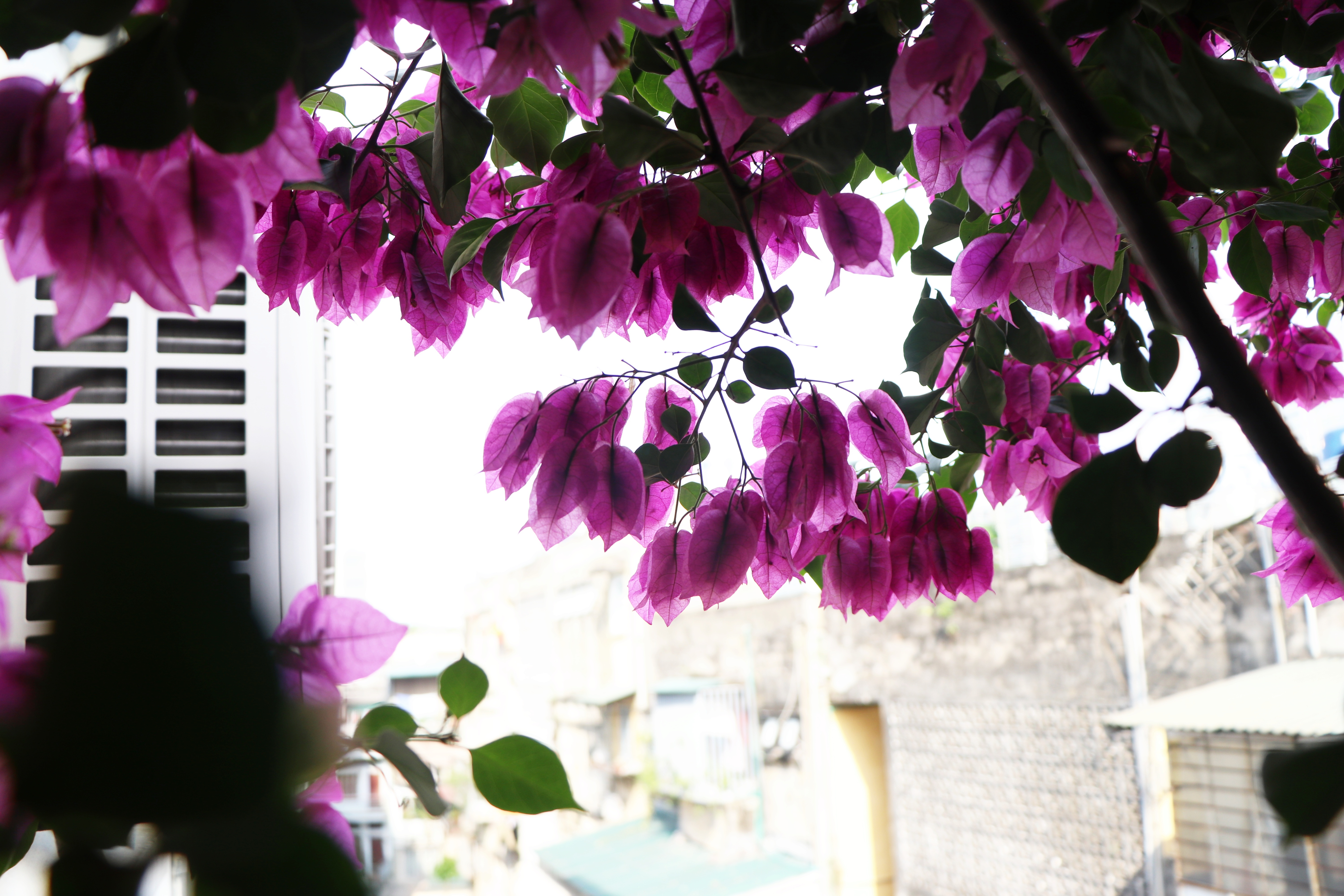 Clip giàn hoa giấy tuyệt đẹp bao phủ ngôi nhà 5 tầng giữa lòng Hà Nội. Video: Thành Khương